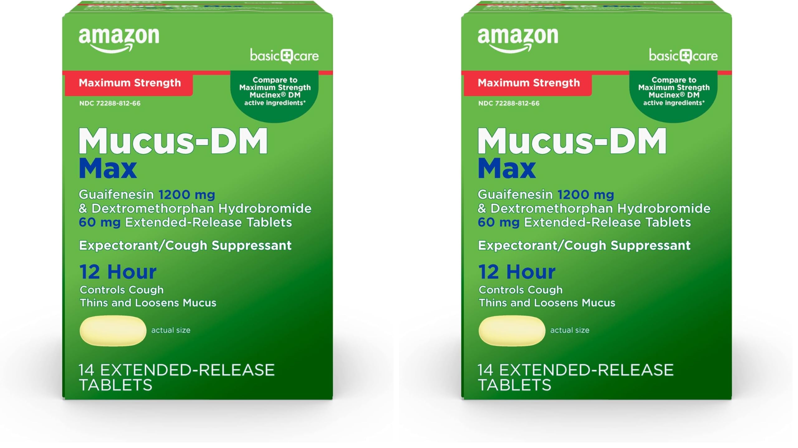 Amazon Basic Care Maximum Strength Mucus DM Expectorant and Cough Suppressant 14 Tablets (Pack of 2) 14 Count (Pack of 2)