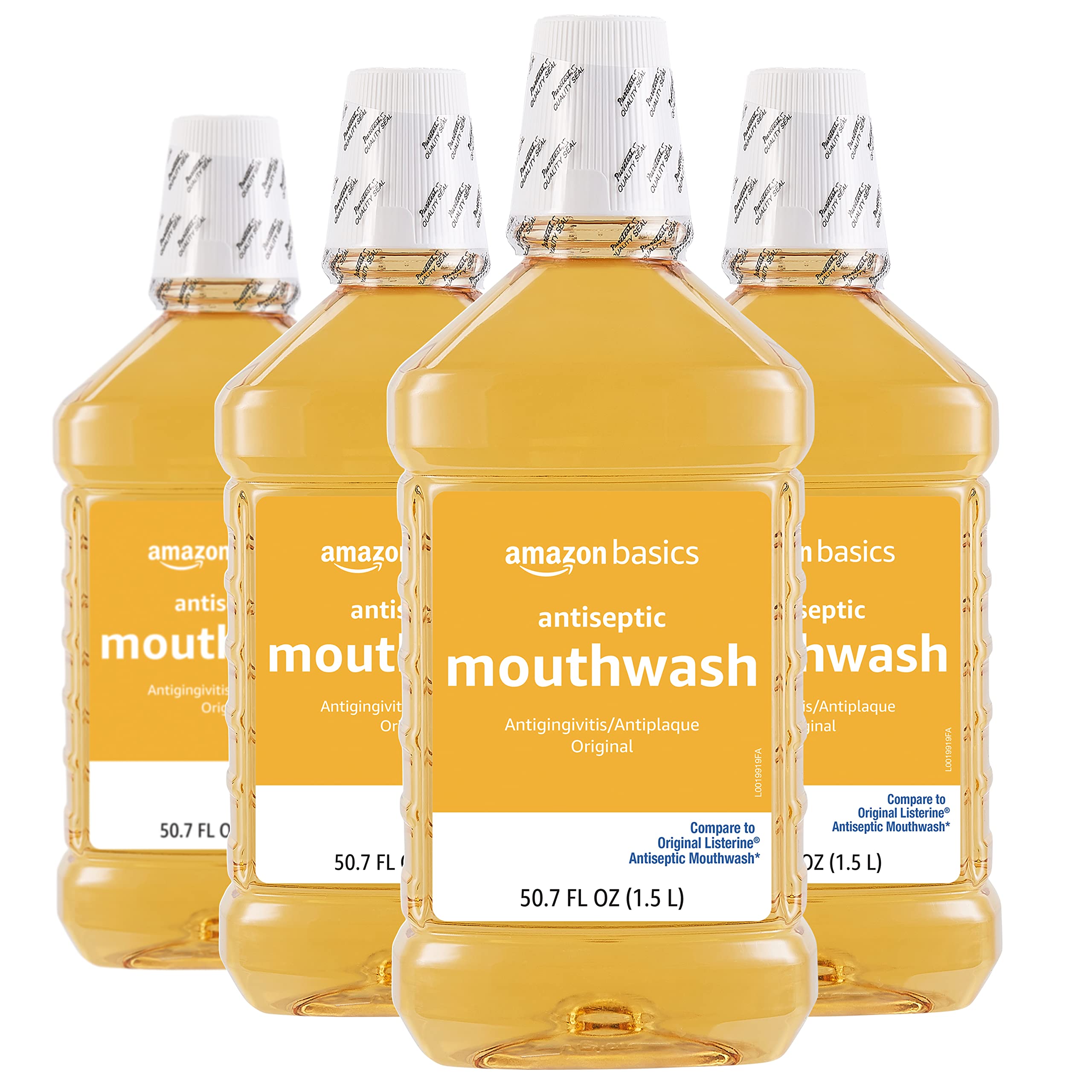 Amazon Basics Antiseptic Mouthwash Original Flavor 1.5 Liter 50.7 ounce (Pack of 4) (Previously Solimo)