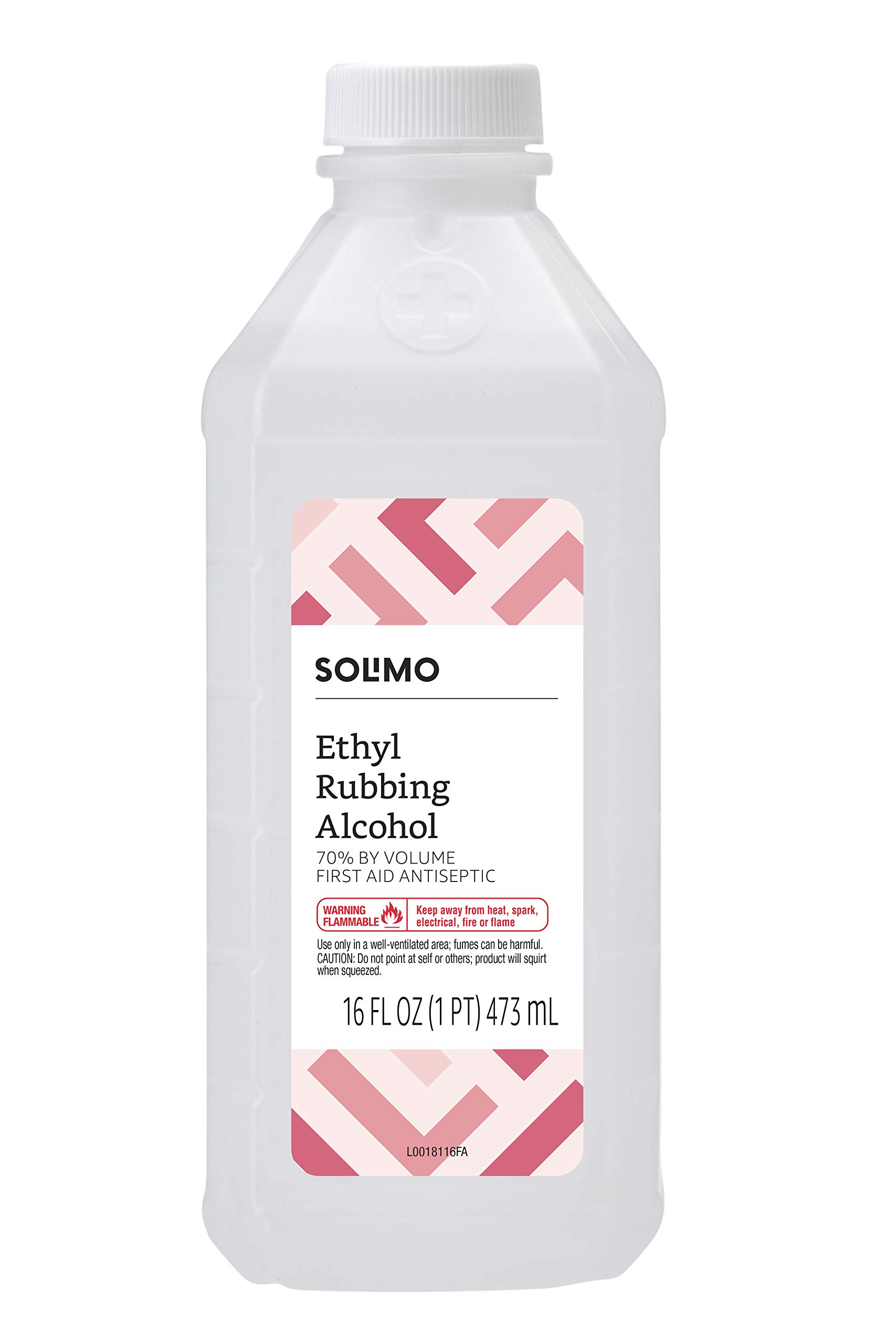 Amazon Brand - Solimo 70% Ethyl Rubbing Alcohol First Aid Antiseptic, 16 Fluid Ounces 16 Fl Oz (Pack of 1)