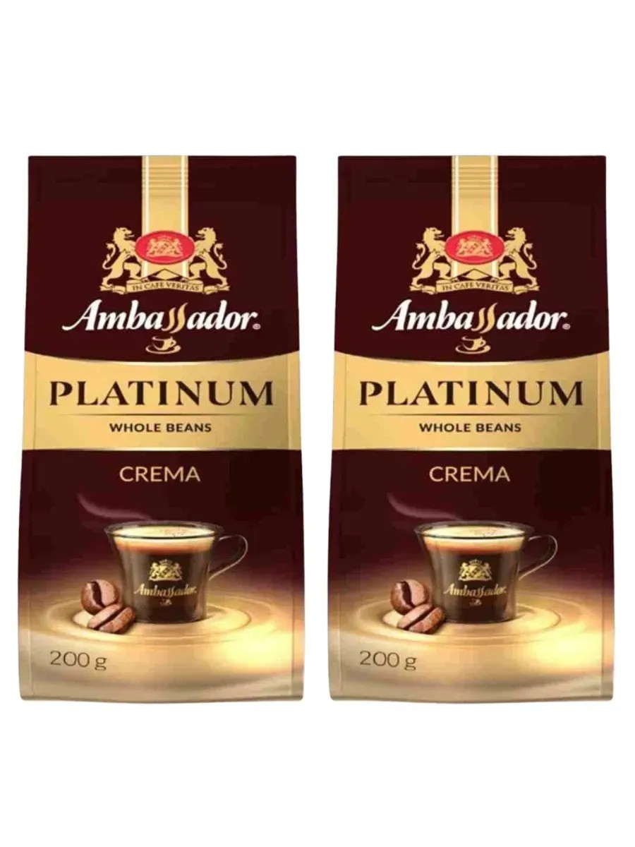 Ambassador Platinum Crema whole bean coffee is a high-quality natural coffee produced in Russia by the Strauss company.