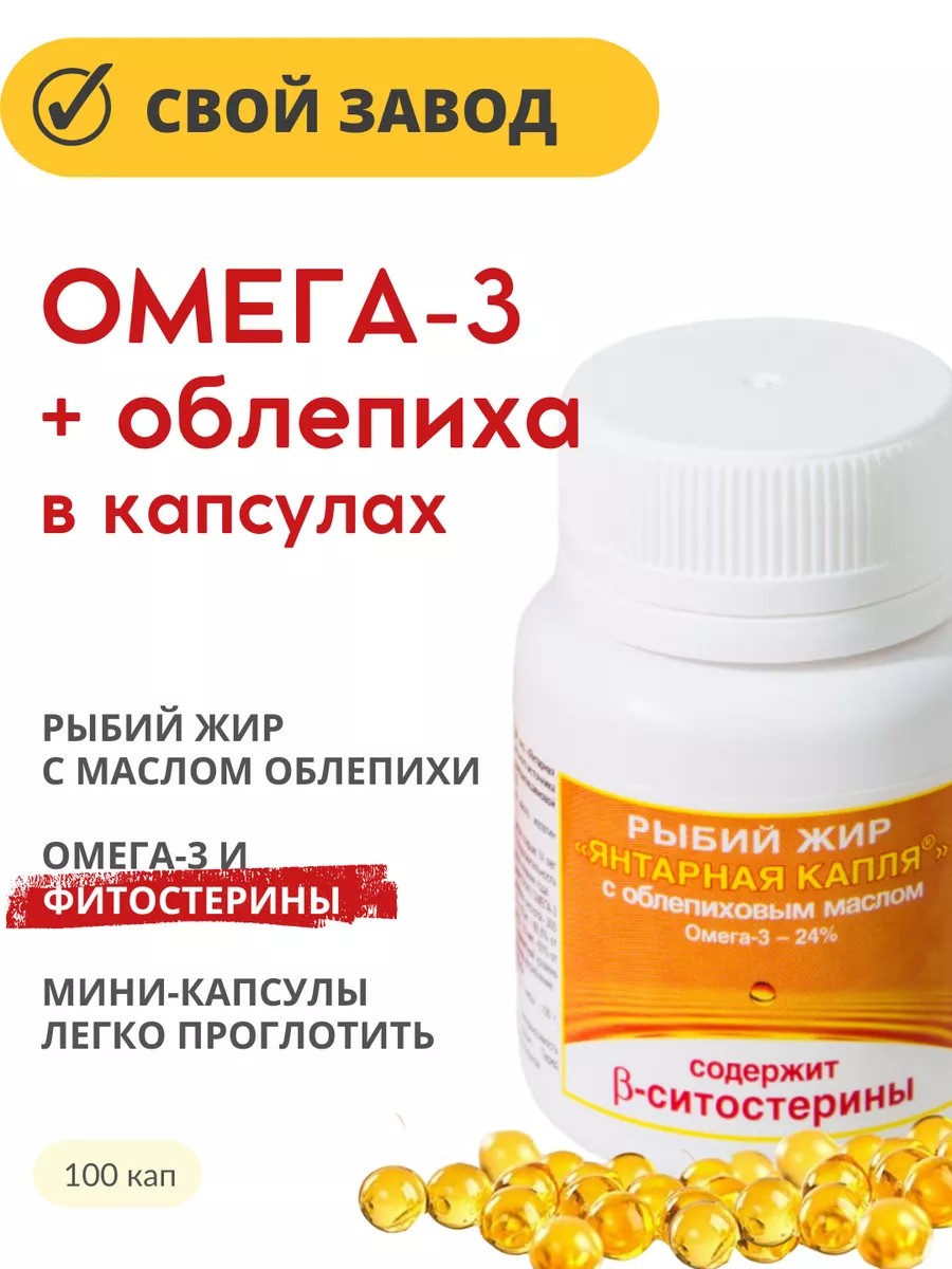 Янтарная Капля рыбий жир омега-3 с облепихой 100 капсул