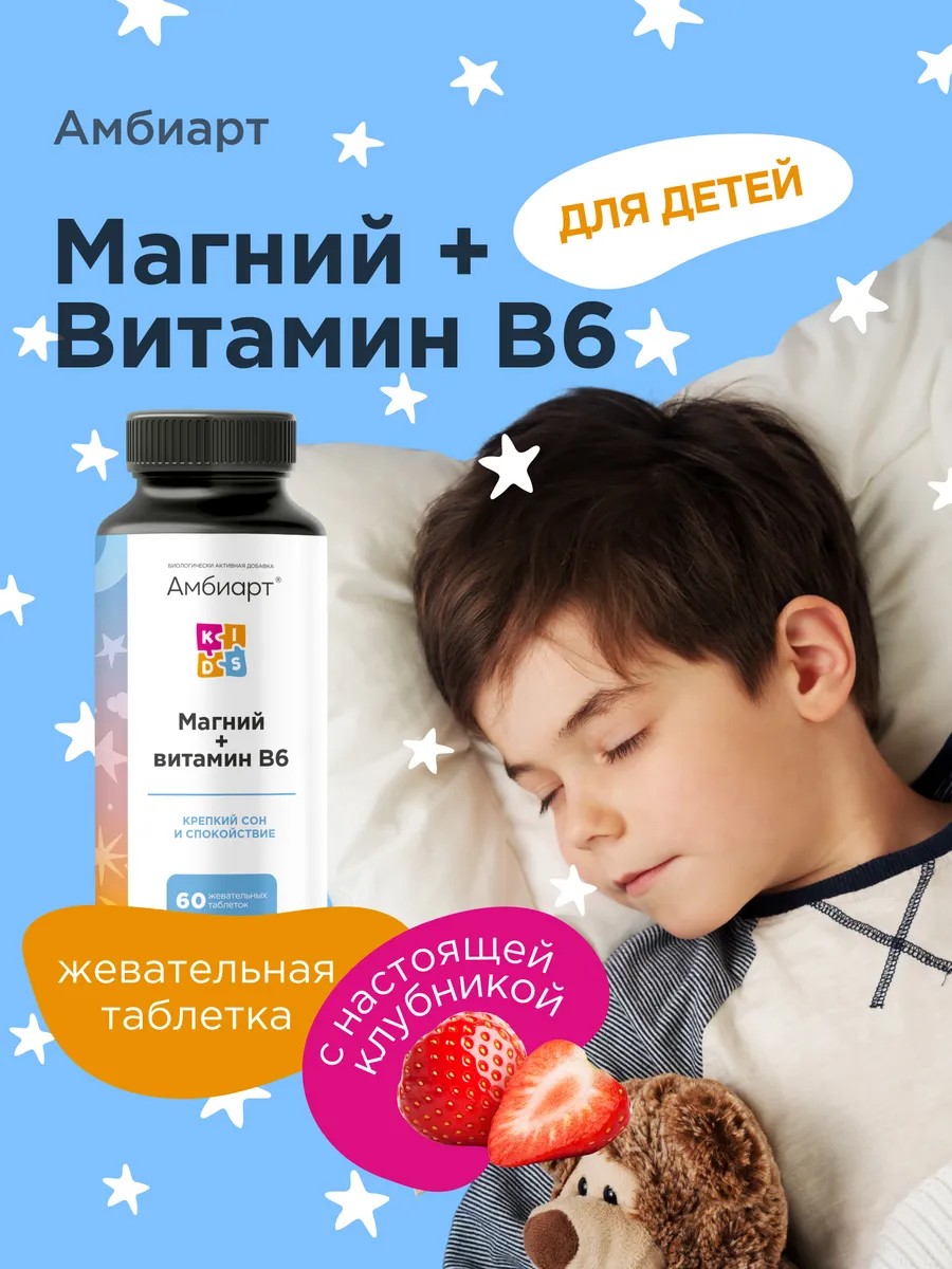 Амбиарт Магний + витамин B6 — натуральная детская биологически активная добавка. Предназначена для поддержания на оптимальном уровне баланса важных микронутриентов, способна дарить малышу спокойствие, крепкий сон и гармоничное развитие!