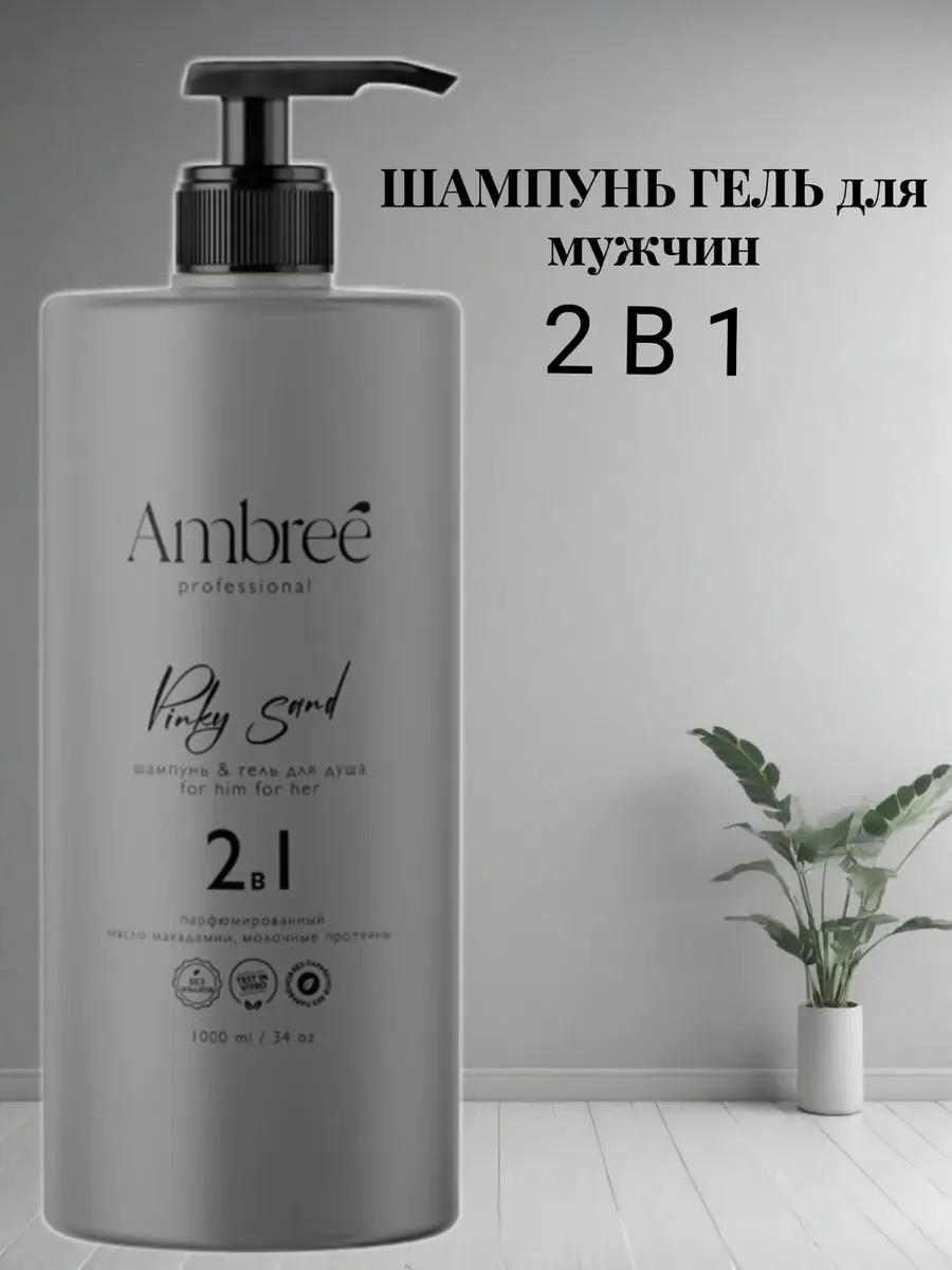 Увлажняющий парфюмированный гель для душа и шампунь для волос 2 в 1 серии Ambree Professional 1000 мл идеально подходит для мытья волос и тела.