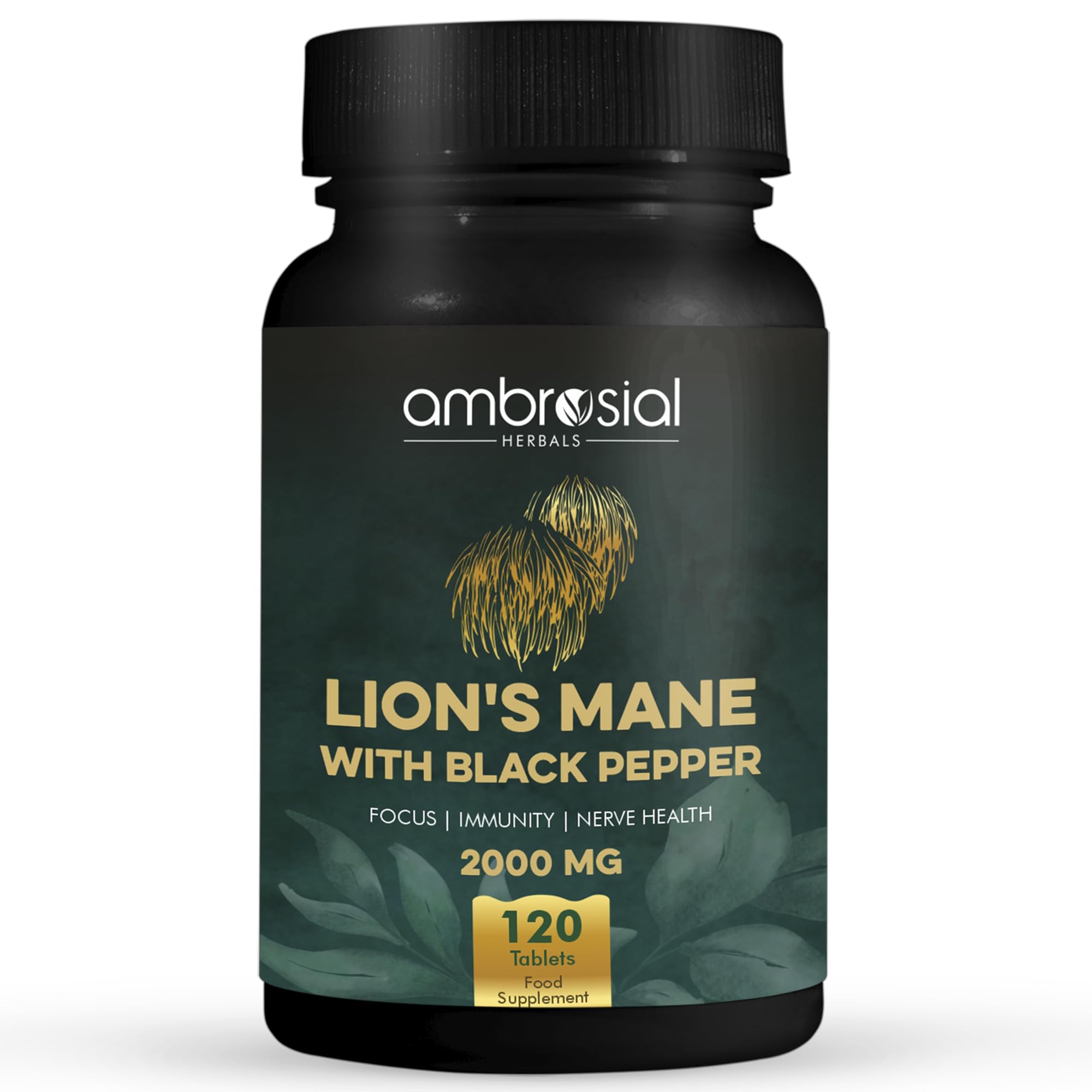 AMBROSIAL Lion's Mane with Black Pepper - 2000 mg Pack of 1-120 Tablets