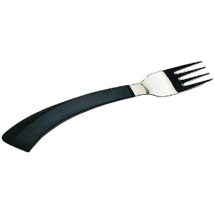 Ideal and practical, this elegant cutlery is designed to make eating easier for people with limited hand, wrist and arm movements. distinct curved, tapered handle is easy to hold. Fork is a full 30 mm (1-inch) wide to allow easier scooping of food. Made from quality stainless steel with black sculpted handles. Length: 114 mm (4½-inch). Weight: 48 g (1½ oz). DIRECTIONS Enable easier eating for people with reduced grip, hand or arm function.