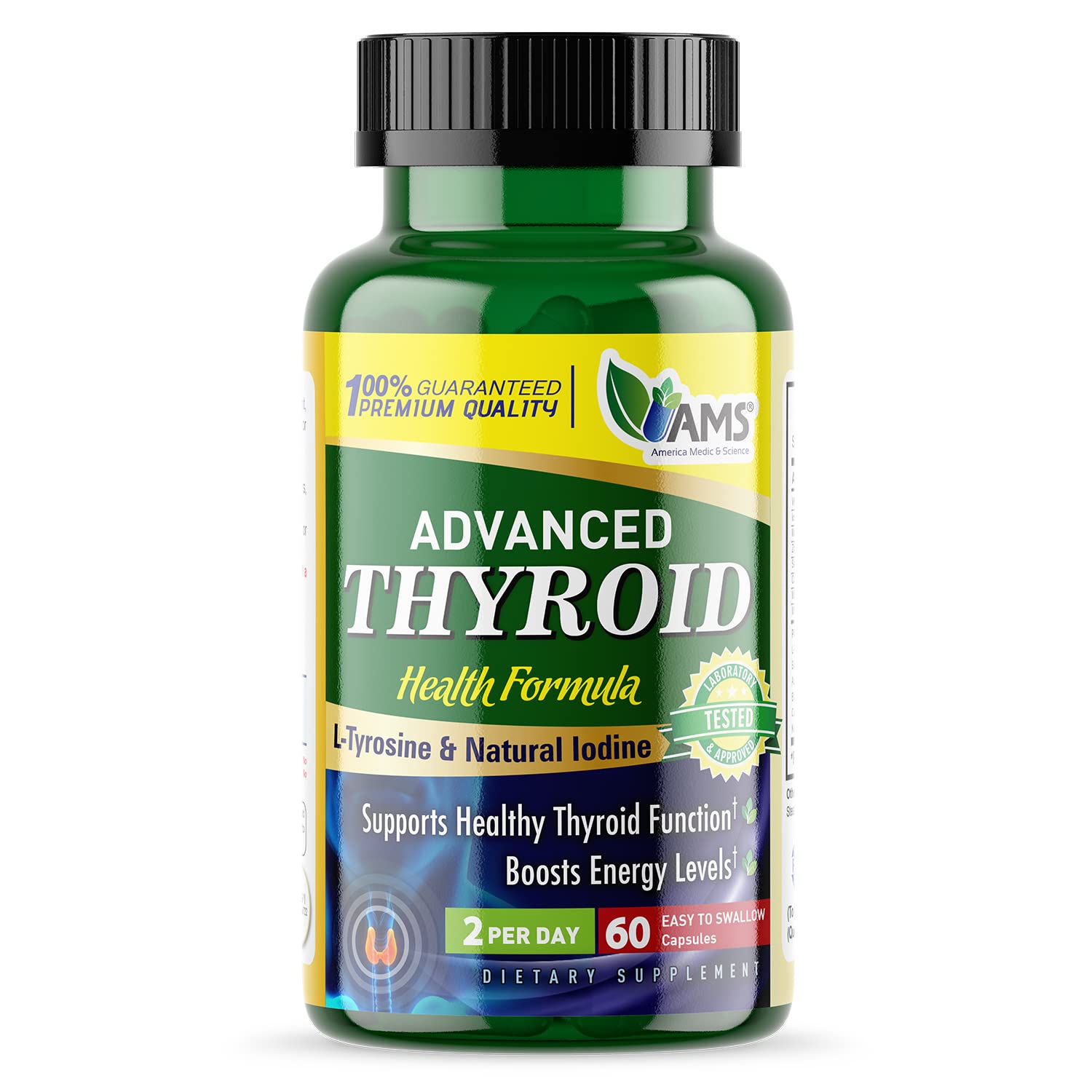America Medic & Science Advanced Thyroid (60 Capsules) | Thyroid Support for Men and Women | Mood and Energy Booster Supplement | with Natural Ashwagandha Iodine Selenium and Vitamin B12 1 Count (Pack of 60)