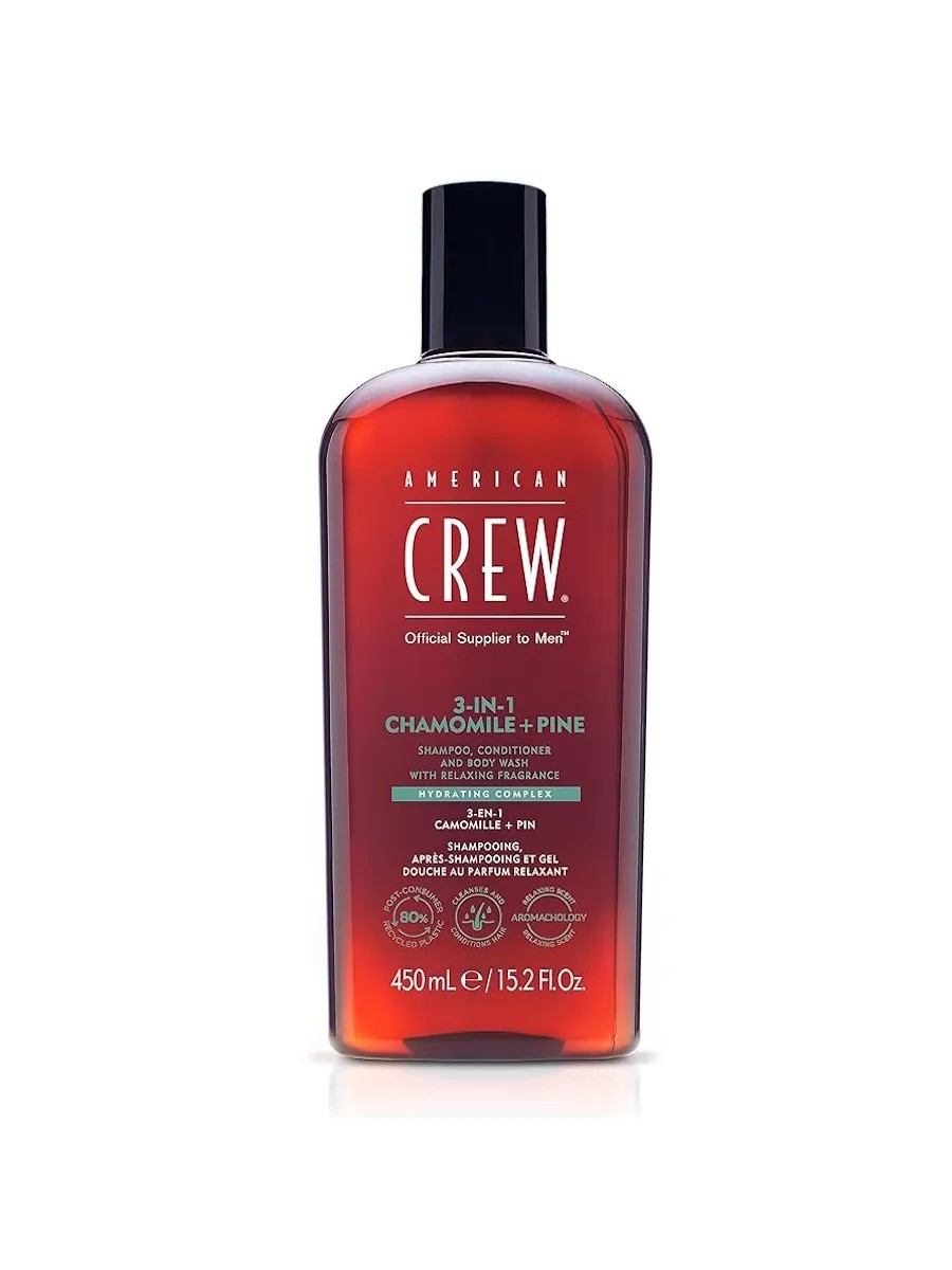 American Crew Chamomile + Pine 3-in-1 Shampoo, Conditioner, and Shower Gel - in one.