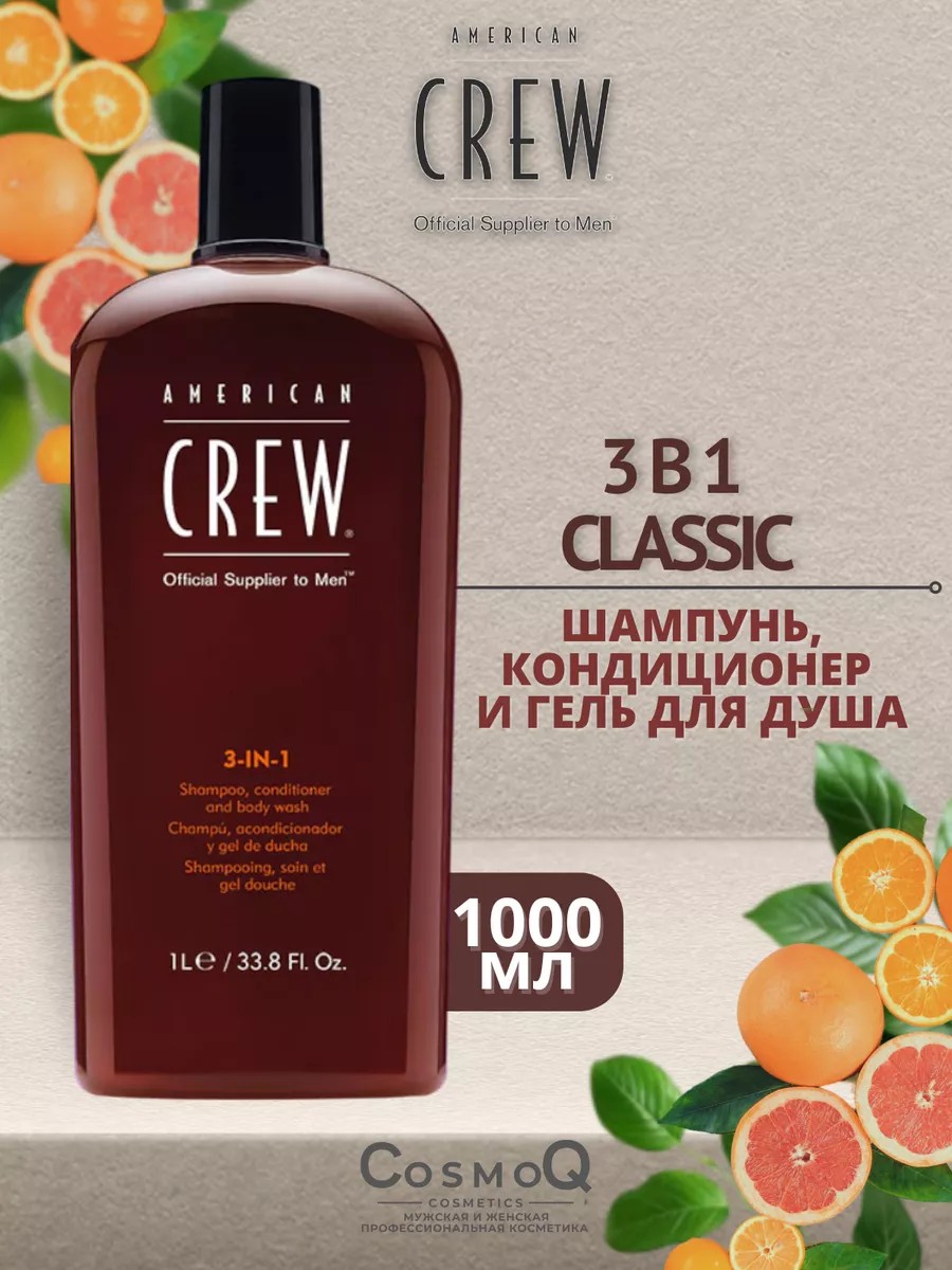 American CREW Classic 3 в 1 Шампунь, кондиционер и гель для душа, 1000 мл