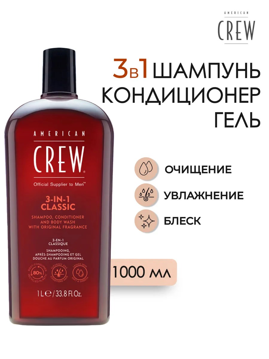 American CREW Classic Shampoo 3 в 1 Шампунь для волос 1000 мл