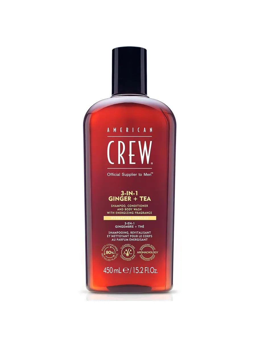 AMERICAN CREW 3-в-1 с имбирем и чаем, 450 мл. Шампунь, кондиционер и гель для душа - в одном средстве. С бодрящим ароматом имбиря и чая.