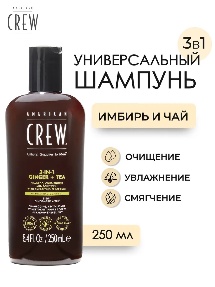 American CREW GINGER + TEA Шампунь 3 в 1 для волос 250 мл