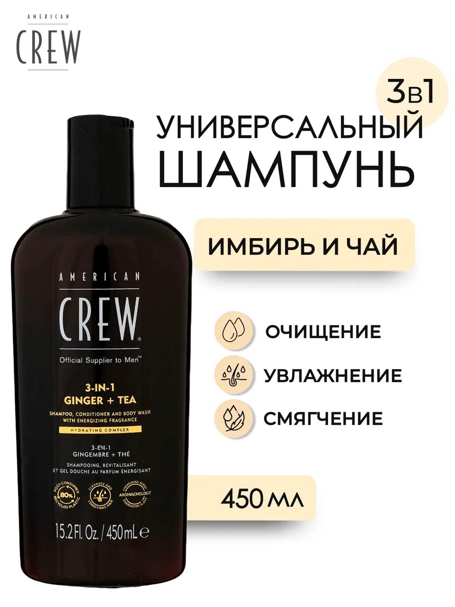 American CREW GINGER + TEA Шампунь 3 в 1 для волос 450 мл