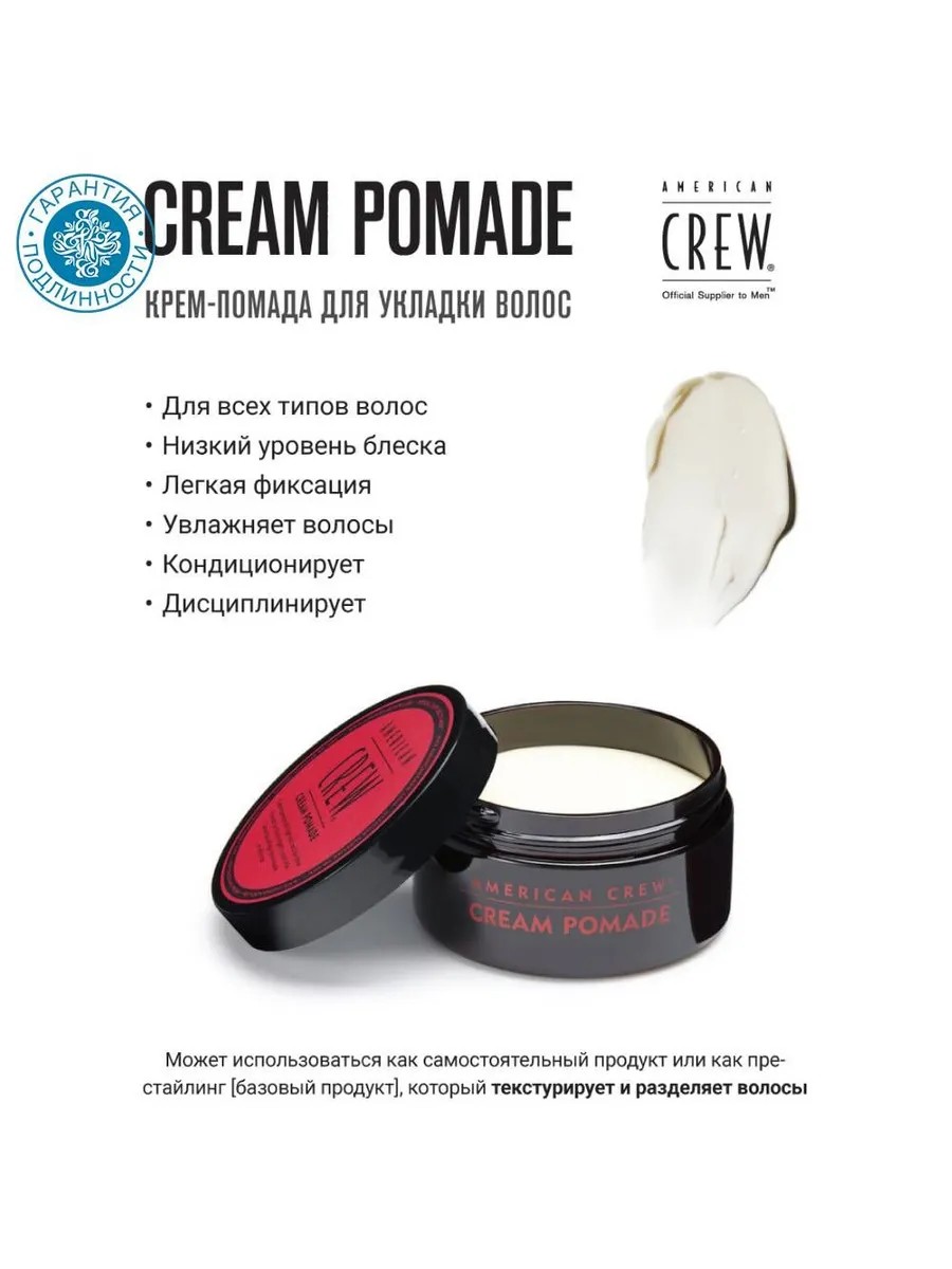 Крем-Помада легкой фиксации с низким уровнем блеска – средство для стайлинга, которое дисциплинирует, текстурирует, увлажняет и кондиционирует волосы. Влагостойкая основа и входящий в состав средства ланолин, обладают ультраувлажняющим свойством и защищают структуру волос от негативного воздействия окружающей среды. Сохраняя форму и текстуру укладки, легкая степень фиксации не нарушает ее подвижность. Матовый финиш позволяет укладке выглядеть естественно. Американ Крю Крим Помад Крем-помада с легкой фиксацией и низким уровнем блеска, 85 мл