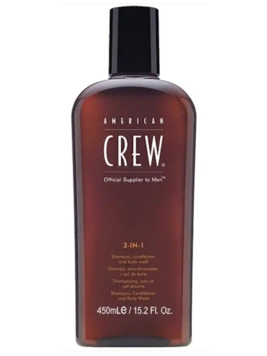 This versatile men's shampoo perfectly combines the properties of both scalp and body cleansing. This men's shampoo maintains the skin's balance, moisturizes and tones, and perfectly cleanses hair of all types of impurities. This convenient product combines shampoo, conditioner, and body wash. It combines versatility, beneficial ingredients, and the classic American Crew scent. It helps remove excess oil and dirt from both your scalp and body. Gently cleanses, it tones the scalp and moisturizes the hair. Hair becomes less tangled. American Crew Classic 3-in-1 Shampoo, Conditioner & Body Wash for men: shampoo, conditioner, and shower gel. American Crew professional hair care products are ideal for home use. They remove impurities from hair, infuse it with vitality, restore and stimulate normal hair growth, and soften and cleanse the skin, leaving it healthier and younger looking. Hair becomes shiny and beautiful. This professional hair and body care shampoo is convenient for use after exercise, during outdoor trips, and on vacation. Available in the following sizes: 100 ml, 250 ml, 450 ml, and 1000 ml. Directions: Apply a small amount to damp hair and body, distributing evenly. Rinse well. Ingredients: Water, Citric Acid, Propylene Glycol, Linalool, Limonene, Sodium Lauryl Glucoside, Acrylates Copolymer, Phenoxyethanol, Sodium Hydroxide, Cocamidopropyl Betaine, Disodium EDTA, Hexyl Cinnamal, Benzyl Alcohol, Benzyl Salicylate, Coco-Glucoside, Glyceryl Oleate, Sage Extract, Parfum (Salvia Officinalis) Extract, Sodium Laureth Sulfate, Hops Extract, Dimethicone, Alpha-Isomethyl Ionone, Ethylene Glycol Distearate, Guar Hydroxypropyltrimonium Chloride, Laureth-4 Caprylyl Glycol, Laureth-23