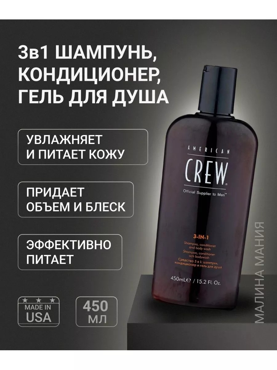 American CREW Шампунь и кондиционер и гель для душа 3в1 450 мл