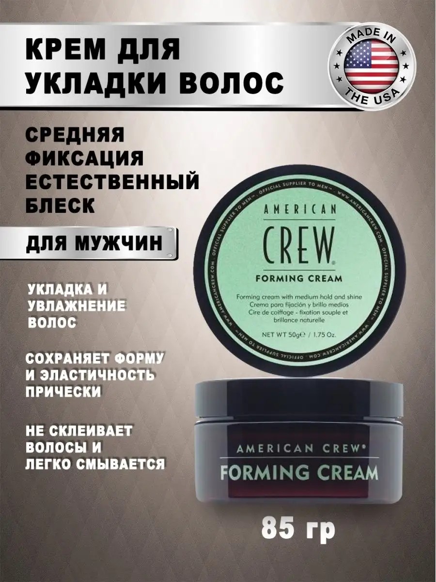 American Crew Forming Cream, a medium-hold styling cream for men's hair and mustache, is easy to use and suitable for all hair types. This professional American Crew product provides hold, elasticity, and natural shine. This wax is ideal for beginners to learn about hair pomades. Thanks to its water-based formula, this styling product is easily washed out with shampoo. It moisturizes and nourishes hair, adds volume, elasticity, strength, and softens. Directions: Rub a small amount between your palms, apply to damp or dry hair, and style.