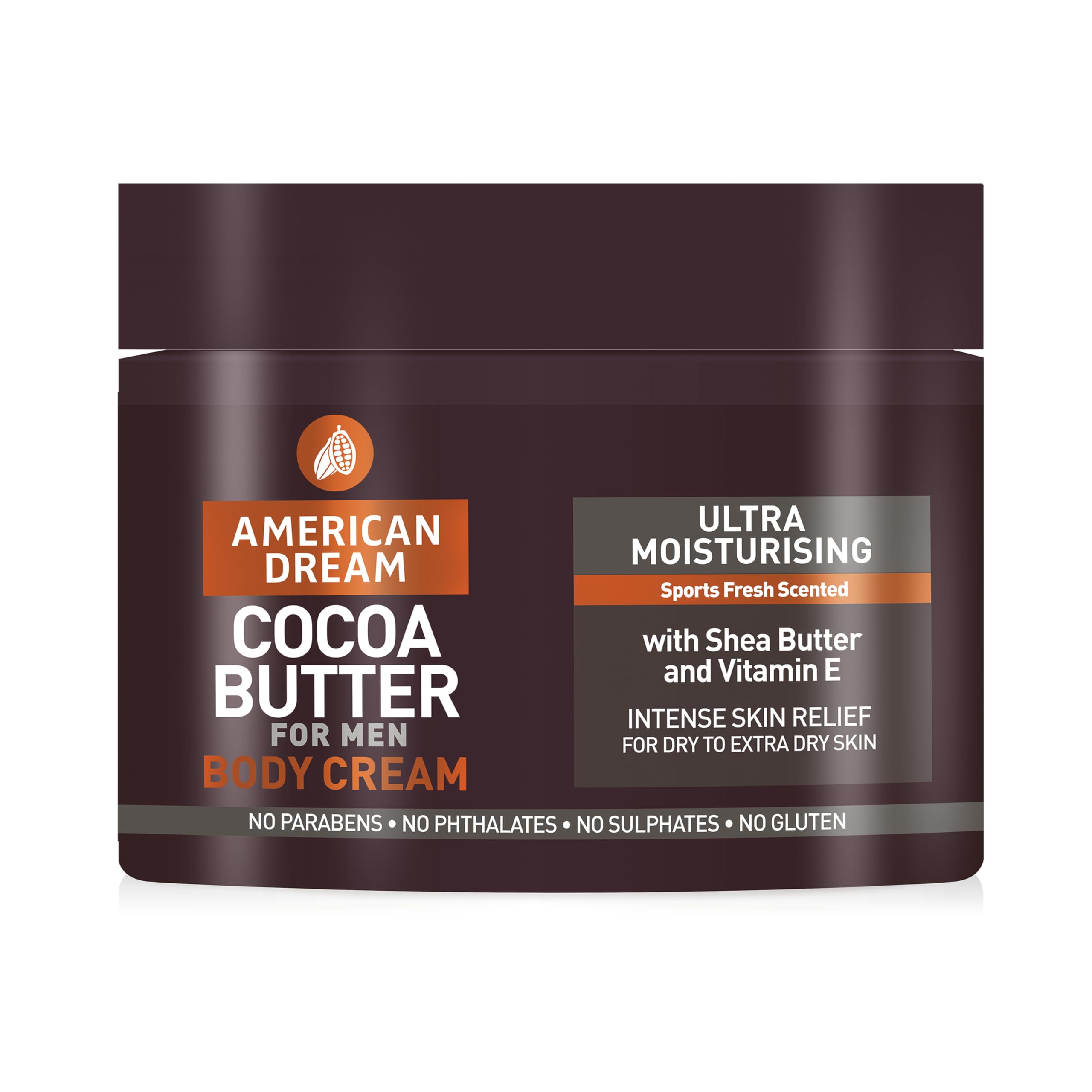 American Dream Cocoa Butter body cream for men ultramoisturizing body butter with a sporty fresh scent