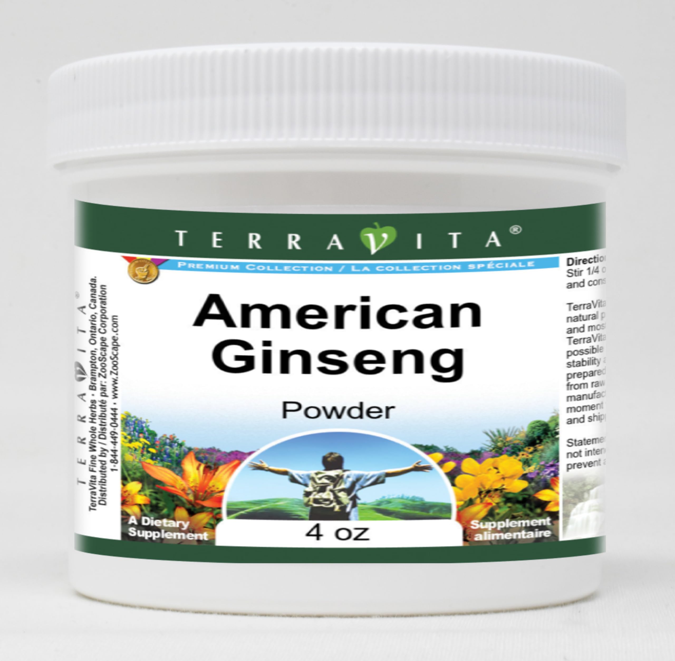 Convenient Powder format. Size: 4 oz. Manufacturer: TerraVita. No fillers. American Ginseng Powder (4 oz, ZIN: 520234).