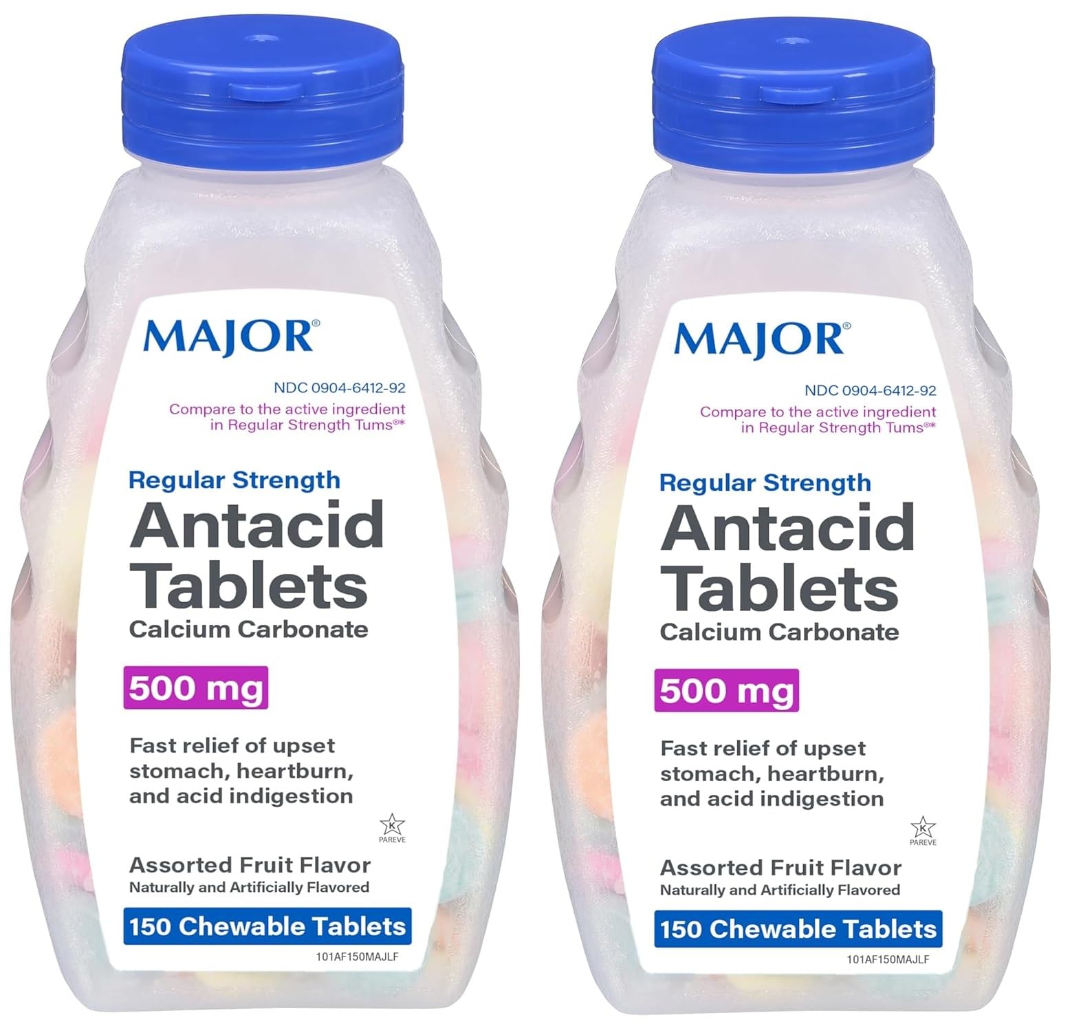 2 Pack Regular Strength Antacid Tablets Chewable Calcium Carbonate 150 Tablets 500mg Assorted Fruit Flavor, Gluten Free.