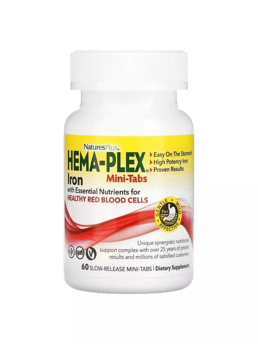 HEMA-PLEX содержит природное хелатное железо, а также витамин С, принимающий участие в усвоении железа. Комплекс витаминов группы В, включая метилированный витамин В12, фолиевую кислоту и В2, способствует оптимальному метаболизму железа и поддержке эритроцитов. Медь способствует правильной транспортировке железа по организму.