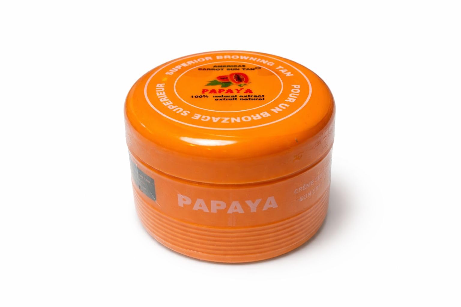 Americas Carrot Sun Tan Papaya cream is designed to restore damaged skin while promoting a natural tan. Papaya oil, rich in antioxidants, combats free radicals from UV exposure, making it perfect for sensitive or sun-damaged skin. This cream is ideal for developing a base tan for all skin types, especially for fair skin that tans with difficulty. Along with papaya oil, it features almond oil to stimulate tanning and henna to enhance your color to a golden hue, extending the life of your tan. Its fruity fragrance adds a refreshing touch. Papaya oil contains antioxidants like papain and carotenoids, along with vitamins A, C, and E