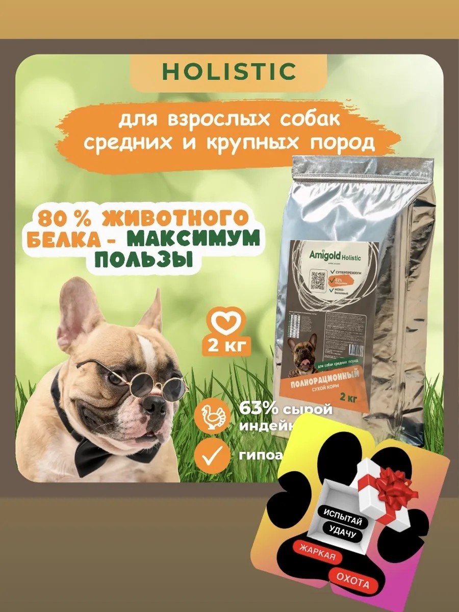 | Полное наименование товара | Сухой полнорационный корм холистик Amigold из индейки для взрослых собак крупных и средних пород 2 кг |