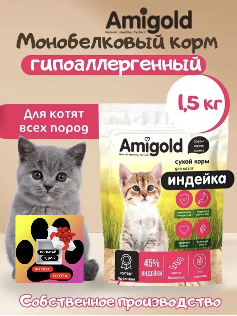 | Полное наименование товара | Сухой корм супер премиум для котят, AmiGold, с индейкой, 1.5 кг |