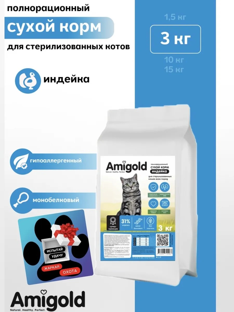 AmiGold Супер премиум корм для стерилизованных кошек 3 кг индейка