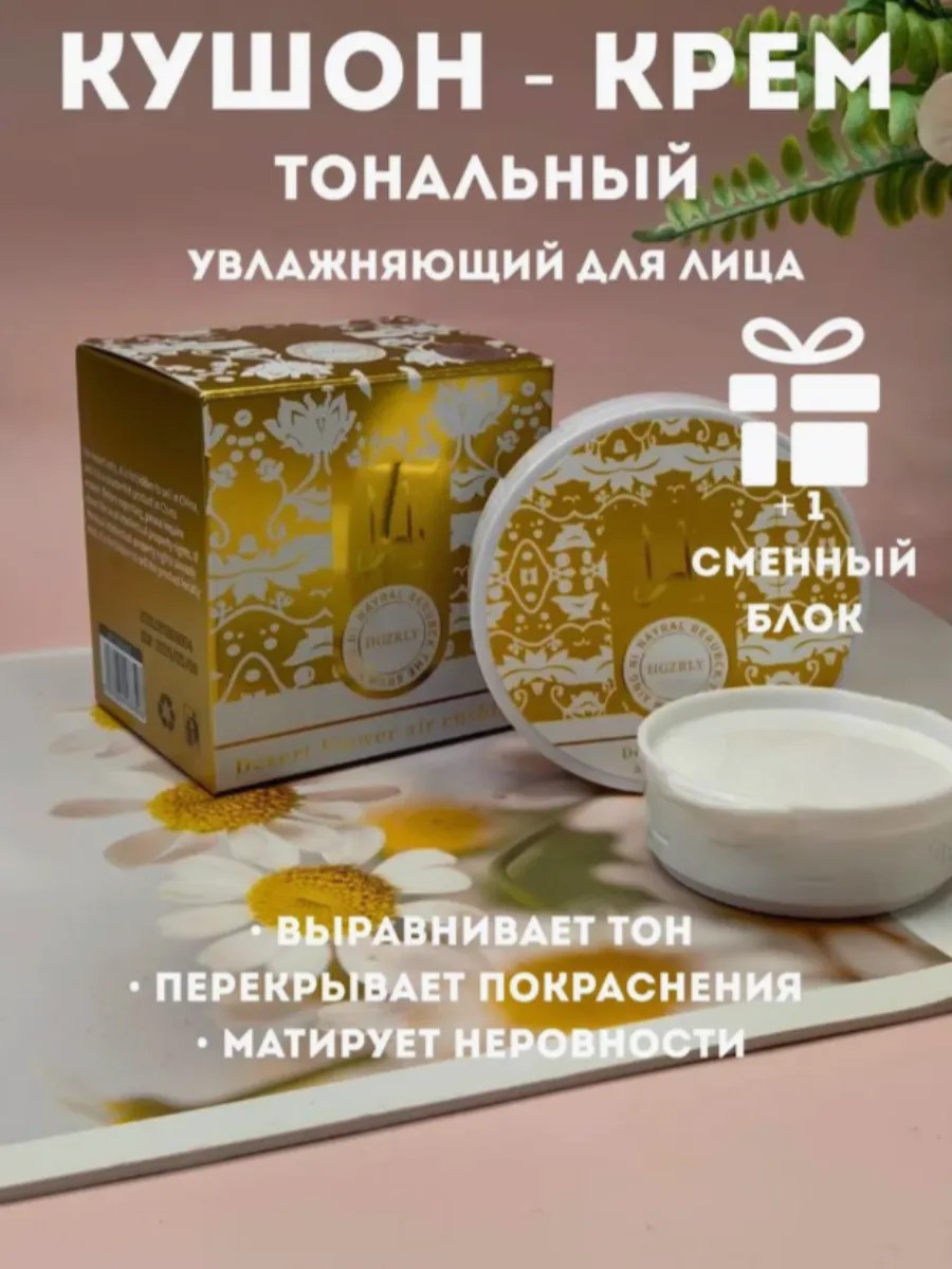 Тональный крем-кушон для лица (BB-крем) в комплекте со спонжем - подходит для всех типов кожи, увлажняет, питает и матирует кожу лица, идеально перекрывает тёмные круги под глазами, убирает покраснения на лице, пигментацию и другие несовершенства. Крем подстраивается под Ваш тон кожи, при этом не пересушивает ее. Можно использовать как консилер. Тональный крем обеспечивает долговременный уход и увлажнение.Мягкая пуховка-спонж обеспечивает экономичный расход средства.; обладает высокой покрывающей способностью.Способ применения кушона: Нанесите небольшое количество кушона на кожу лица, акцентируя внимание на проблемных зонах.Растушуйте консилер спонжем.Рекомендуется закрепить результат пудрой, для большей стойкости. корейская косметика.Отлично подходит для использования каждый день, для особых случаев, а также интересная идея подарка. Тональный кушон с блюр-эффектом маскирует несовершенства кожи: уменьшает видимость морщин, скрывает покраснения, выравнивает тон и разглаживает микрорельеф. Средство все для лица и ухода , замедляет старение кожи благодаря высокому фактору защиты от ультрафиолета. Содержит ниацинамид, аденозин, экстракт яблока и морошки, физические и химические фильтры. кушон для лица корея, кушон для лица тональный.