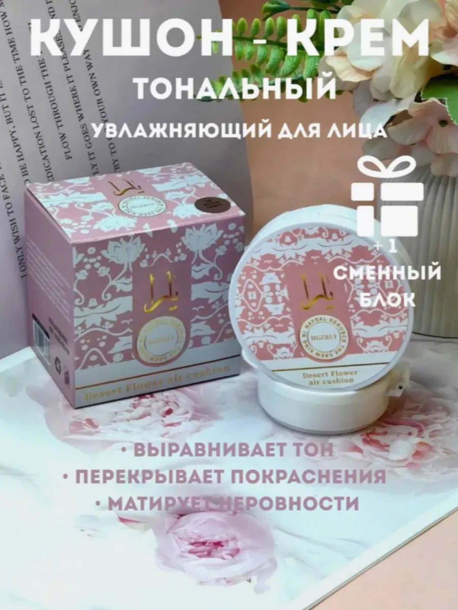 | Комплектация | тональный крем кушон со спонжем шт; Тональный крем кушон для лица 1 штука; 1 шт кушон + 1 сменный блок в подарок |