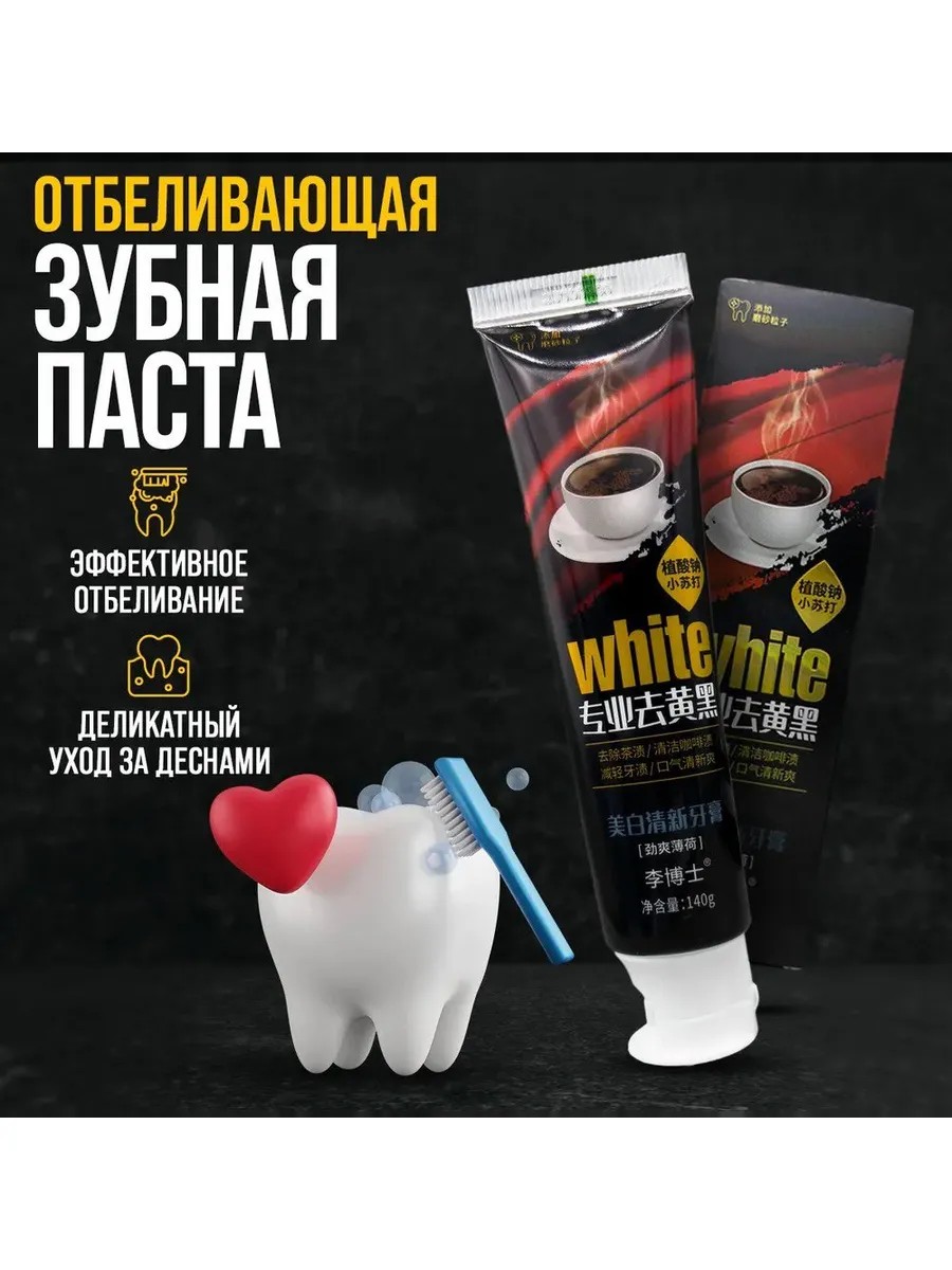 Отбеливающая зубная паста от следов кофе - это настоящий спаситель для людей, которые регулярно употребляют кофе. не только деликатно отбеливает и оставляет ощущение свежести и чистоты зубов надолго. Разработана специально для любителей кофе, красного вина, чая и сигарет.