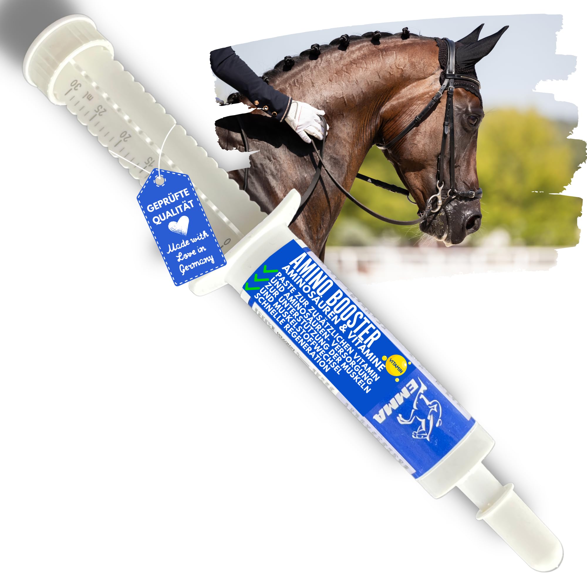 Amino mineral vitamin complex horse I Highly dosed complex amino acids available in liquid booster form - fast help strengthens the horse's muscles I Concentrated horse feed also suitable for seniors, young horses in training, sport ponies I Muscle Boost support for sport competition I In case of unexplained decline in performance poor muscle growth maintenance of muscle mass. Complex muscle-building feed for horses in the form of vitamin paste I Energy Aminos supplementary feed with amino acids lysine methionine B vitamins horse supports oxygen metabolism and energy supply of muscle cells I Increased muscle strength for better performance energy horse I Muscle hyperacidity soreness is combated I. Amino acids horse - Muscle strengthening supported by a complex of essential vitamins amino acids I Maintenance development of the muscles in horses - against muscle wasting in the neck back hindquarters rump I Feed for more muscle in horses I promotes muscle development muscle regeneration I As amino liquid with vitamin complex B1, B6, B12, vitamin B complex. ? Extra for the muscles - Liquid amino as a feed supplement for animals to support performance I Mineral tube feed for horses with amino acid lysine methionine I Muscle regeneration for old young horses after training sport I Top senior feed for horses I Amino vitamin B complex liquid to stabilize performance potential during convalescence and in case of general instability. Essential amino acid supports healthy muscles and the energy supply of muscle cells - Muscle building horse I Liquid amino acids: Increased muscle strength for performance energy I Complex amino acids optimal composition therefore rapid absorption by the body I muscle acidification soreness is prevented I liquid for the muscles instead of muscle powder.Amino minéral vitamine complexe cheval I acides aminés complexes hautement dosés disponibles sous forme de liquide booster - aide rapide renforce les muscles du cheval I aliment concentré pour chevaux également adapté aux seniors, aux jeunes chevaux à l'entraînement, au sport au poney I soutien Muscle Boost pour le sport la compétition I en cas de baisse inexpliquée des performances de mauvaise croissance musculaire maintien de la masse musculaire. Aliment reconstituant musculaire complexe pour chevaux sous forme de pâte vitaminée I Aliment complémentaire Energy Aminos avec acides aminés lysine méthionine vitamines B cheval soutient le métabolisme de l'oxygène et l'approvisionnement en énergie des cellules musculaires I Force musculaire accrue pour une meilleure performance énergie cheval I Une hyperacidité musculaire courbatures est combattue I. Acides aminés cheval - Renforcement musculaire soutenu par un complexe de vitamines d'acides aminés essentiels I Maintien développement de la musculature chez le cheval - contre la fonte musculaire de l'encolure du dos de l'arrière-main de la croupe I Alimentation pour plus de muscle chez le cheval I favorise le développement musculaire la régénération des muscles I Comme liquide aminé avec complexe de vitamines B1, B6, B12, complexe de vitamines b. ? Extra pour les muscles - Amino liquide comme complément alimentaire pour animaux pour soutenir la performance I Aliment minéral tube chevaux avec acide aminé lysine méthionine I Régénération de la musculature pour le vieux jeune cheval après l'entraînement le sport I Aliment senior top pour chevaux I Amino vitamine b complexe liquide pour stabiliser le potentiel de performance pendant la convalescence et en cas d'instabilité générale. Acide aminé essentiel soutient une musculature saine et l'approvisionnement en énergie des cellules musculaires - Renforcement musculaire cheval I Acides aminés liquides : Force musculaire accrue pour la performance l'énergie I Acides aminés complexes composition optimale donc absorption rapide par l'organisme I une acidification musculaire courbatures est prévenue I liquide pour les muscles au lieu de poudre musculaire.