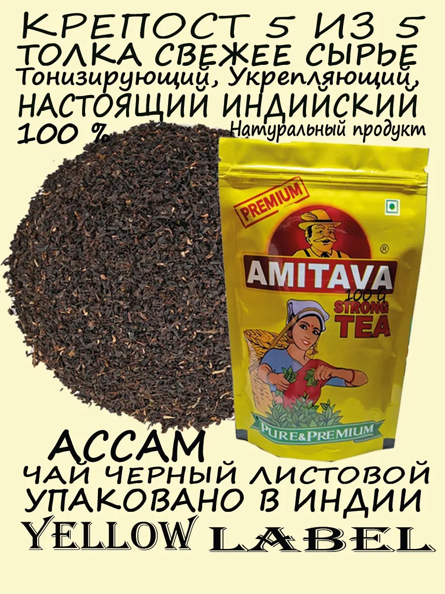 Amitava YELLOW LABEL Чай листовой черный 100 г, Ассам . STRONG