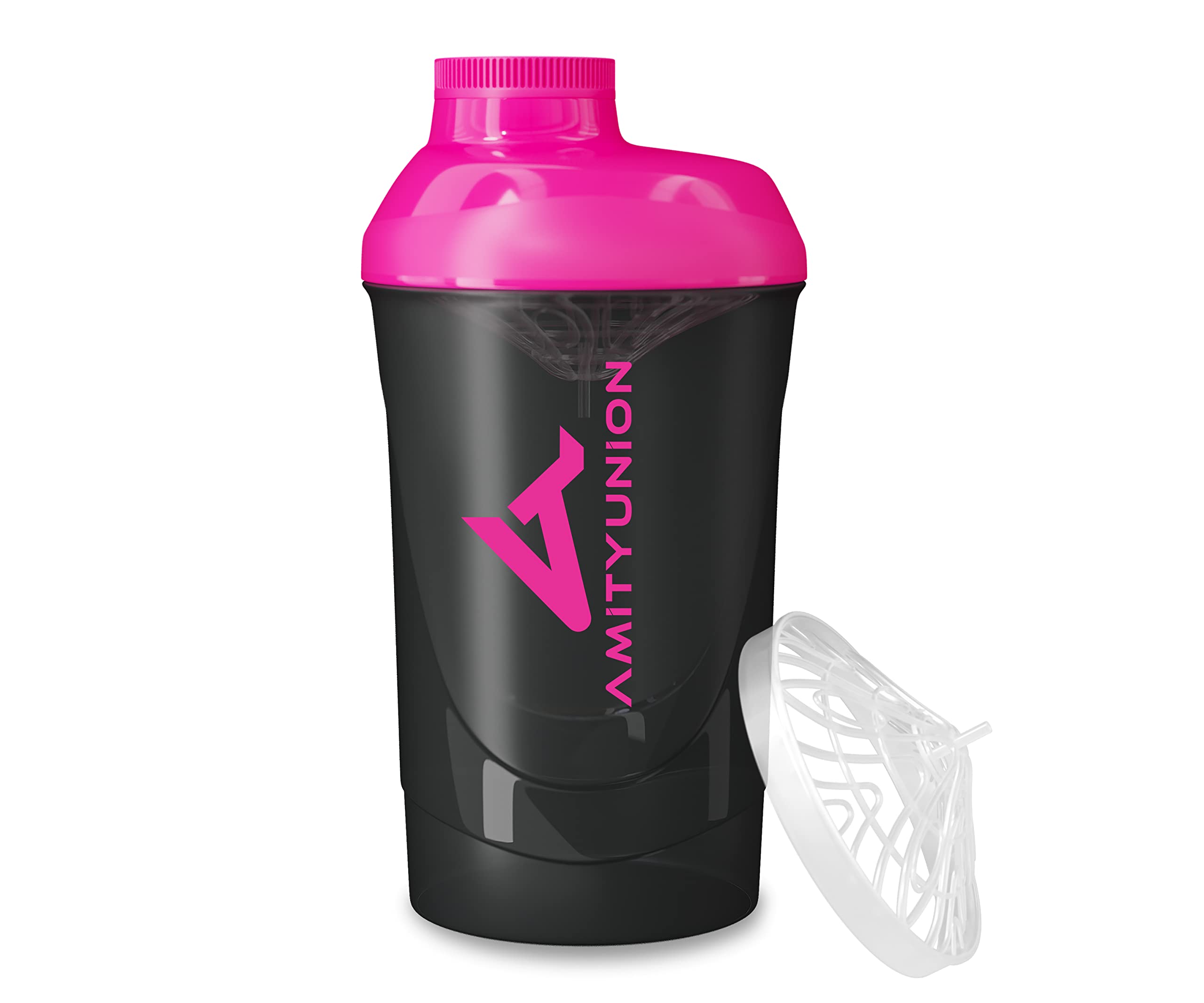 Amity Union women protein Shaker 800 ml black pink deluxe - original protein shaker leak -proof - BPA free with sieve scale for creamy whakes gym fitness mug for isolates sport drinks
