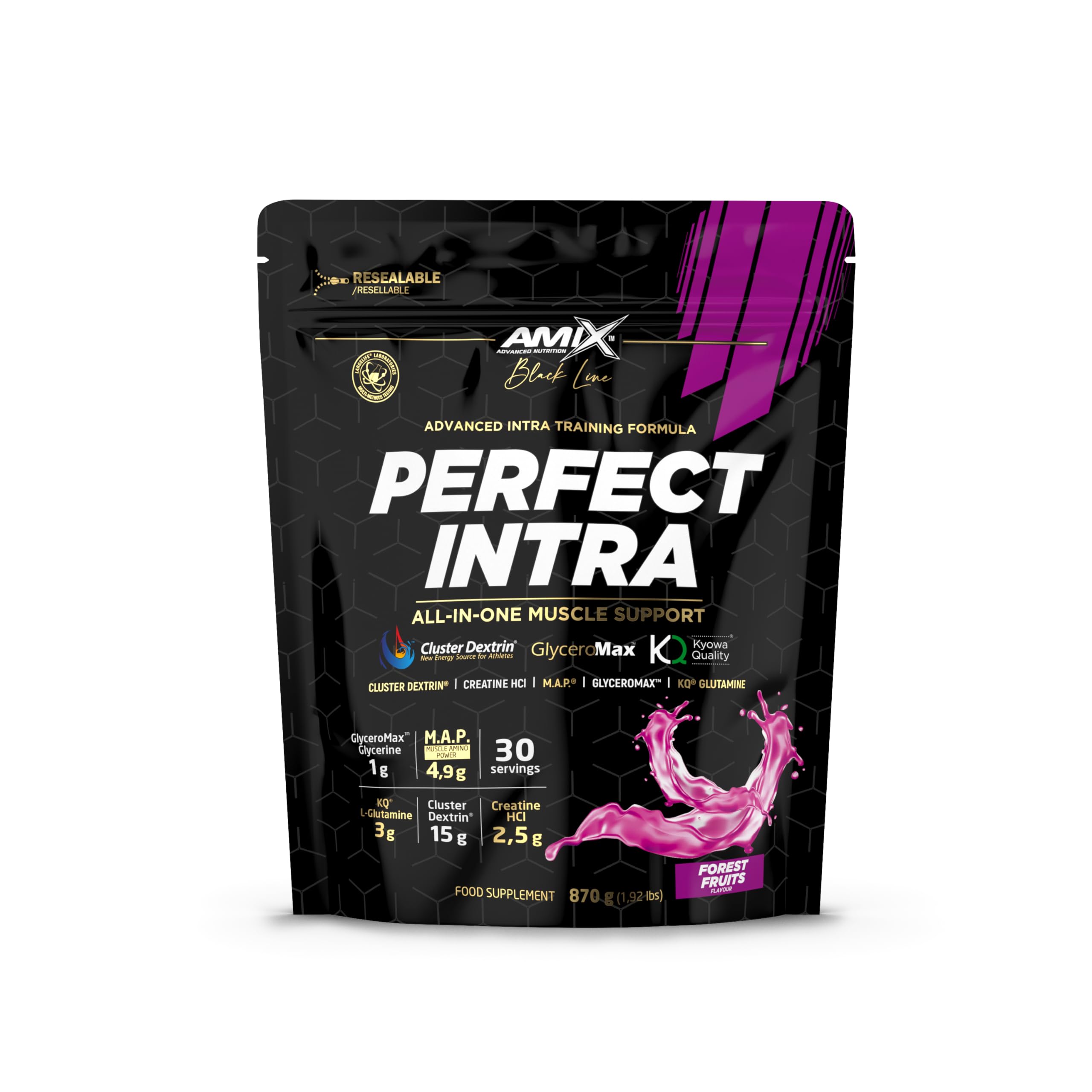 Amix Perfect Introduceert a unique sports supplement designed for the most demanding athletes to take their intensive workouts to the next level.The most powerful "intra-workout compounds" are generated in this rescue drink.Het an advanced combination of highly branched cyclic dextrtrain (HBCD) Cluster Dextrin, GlyceroMax, creatine HCl, amino acids M.A.P. with L - Glutamine and vitamins. Format 870 gr bottle. Directions for use Mix 1 dose (29 g) with 300 ml of water. Ingredients (forest fruits): Highly branched cyclic dextrin Cluster Dextrin, M.A.P. Matrix (L - leucine, L - lysine hydrochloride, L - isoleucine, L - valine, L - phenylalanine, L - histidine, L - methionine, L - tryptophan), Kyowa Quality L - glutamine, creatine hydrochloride, GlyceroMax (glycerol 65 , anti-agglomerol ante: silicon dioxide), acidulant: citric acid anti-caking agent: silicon dioxide aroma, ascorbic acid (vit. C), emulsifier: soy lecithin sodium chloride, sweeteners: sucralose in acesulfame - K beet extract, potassium citrate, pyridoxine HCl (vit. B6) Nutritional information INGREDIENTS (Forest fruits): Highly branched cyclic dextrin Cluster Dextrin , M.A.P. Matrix (L - leucine, L - lysine hydrochloride, L - isoleucine, L - valine, L - phenylalanine, L - threonine, L - histidine, L - methionine, L - tryptophan). Kyowa-kwaliteit. y L - glutamine, creatine hydrochloride, glyceroMax ™ (glycerol 65 , anti-caking agent: silicon dioxide), acidulant: citric acid anti-caking agent: silicon dioxide aroma, ascorbic acid (vit. C), emulsifier: soy lecithin chlorideAmix Black Line Perfect Intra 870 Gr Sabor Frutas del Bosque Amix Perfect Introduceert een suplemento deportivo único diseñado para que los atletas más exigentes lleven sus entrenamientos intensivos al siguiente nivel.Los "compuestos intra - entrenamiento " más belangrijke se gevonden en esta bebida rescante.Het een combinatie avanceer zada de dextrtre ina cíclica altamente ramificada (HBCD) Cluster Dextrin, GlyceroMax, creatina HCl, aminoácidos M.A.P. con L - Glutamina y vitaminas.FormatoBote de 870 gr.Modo de empleoMezclar 1 dosis (29 g) met 300 ml de agua.Ingrediënten (Frutras del bosque): Dextrina cíclica altamente ramificada Cluster Dextrin, M.A.P. Matrix (L - leucina, hidrocloruro de L - lisina, L - isoleucina, L - valina, L - fenilalanina, L - histidina, L - metionina, L - triptófano), Kyowa Quality L - glutamina, hidrocloruro de creatina, GlyceroMax (glicerol 65 , anti-aglomerol ante: dióxic. silicio), acidulante: ácido cítrico anti-aglomerant: dióxido de silicio aroma, ácido ascórbico (vit. C), emulgent: lecitina de soja cloruro de sodio, edulcorantes: sucralosa en acesulfamo - K extracto de remolacha, citrato de potasio, piridoxina HCl (vit. B6) Información nutricional INGREDIËNTEN (Frutras del bosque): Dextrina cíclica altamente ramificada Cluster Dextrin , M.A.P. Matrix (L - leucina, hidrocloruro de L - lisina, L - isoleucina, L - valina, L - fenilalanina, L - treonina, L - histidina, L - metionina, L - triptófanoo). Kyowa-kwaliteit. y L - glutamina, hidrocloruro de creatina, glyceroMax ™ (glicerol 65 , anti-aglomerant: dióxido de silicio), acidulante: ácido cítrico anti-aglomerant: dióxido de silicio aroma, ácido ascórbico (vit. C), emulgent: lecitina de soja cloruro