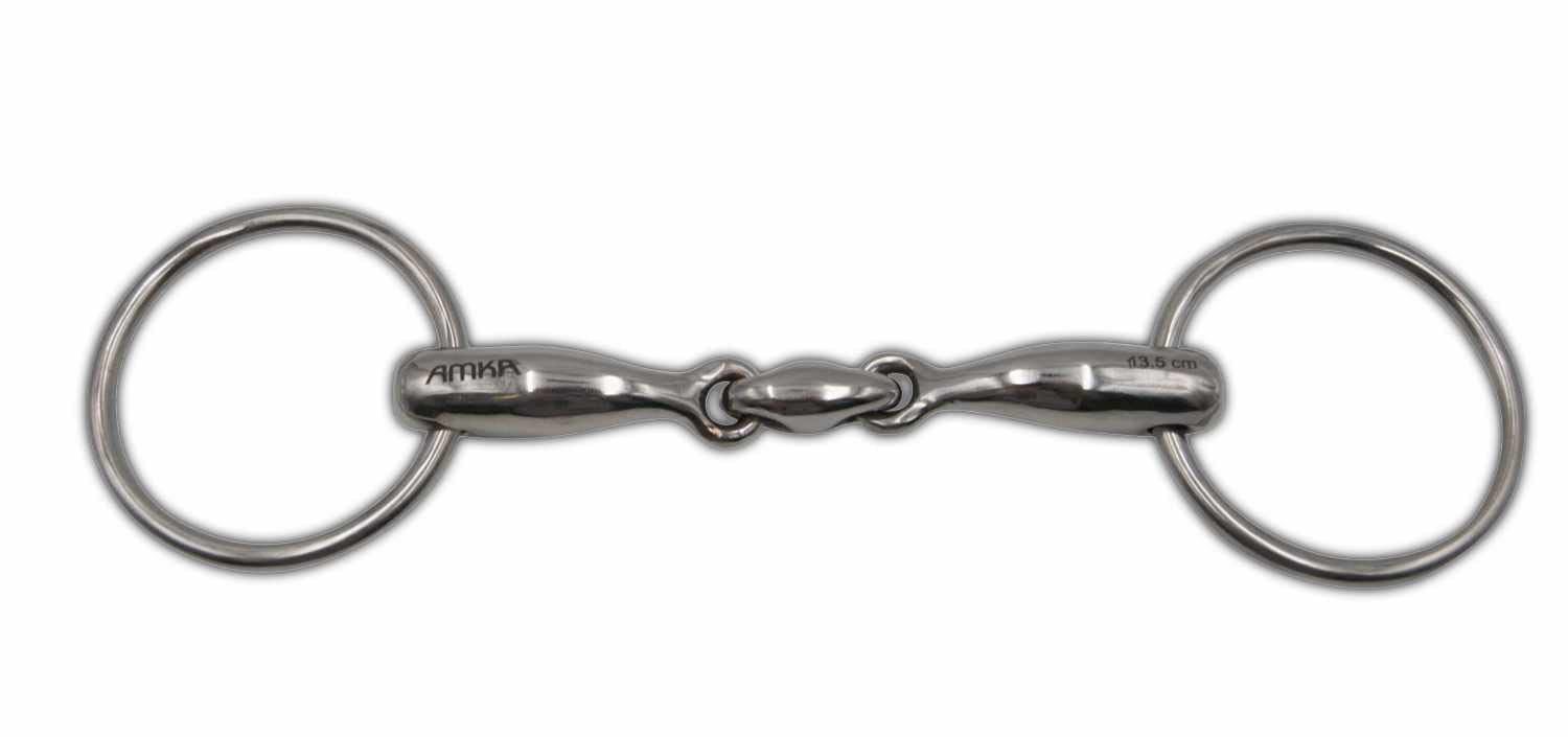 AMKA snaffle bit double broken solid stainless steel thickness 18 mm rings 65 mm up to 17.5 cm 14.5