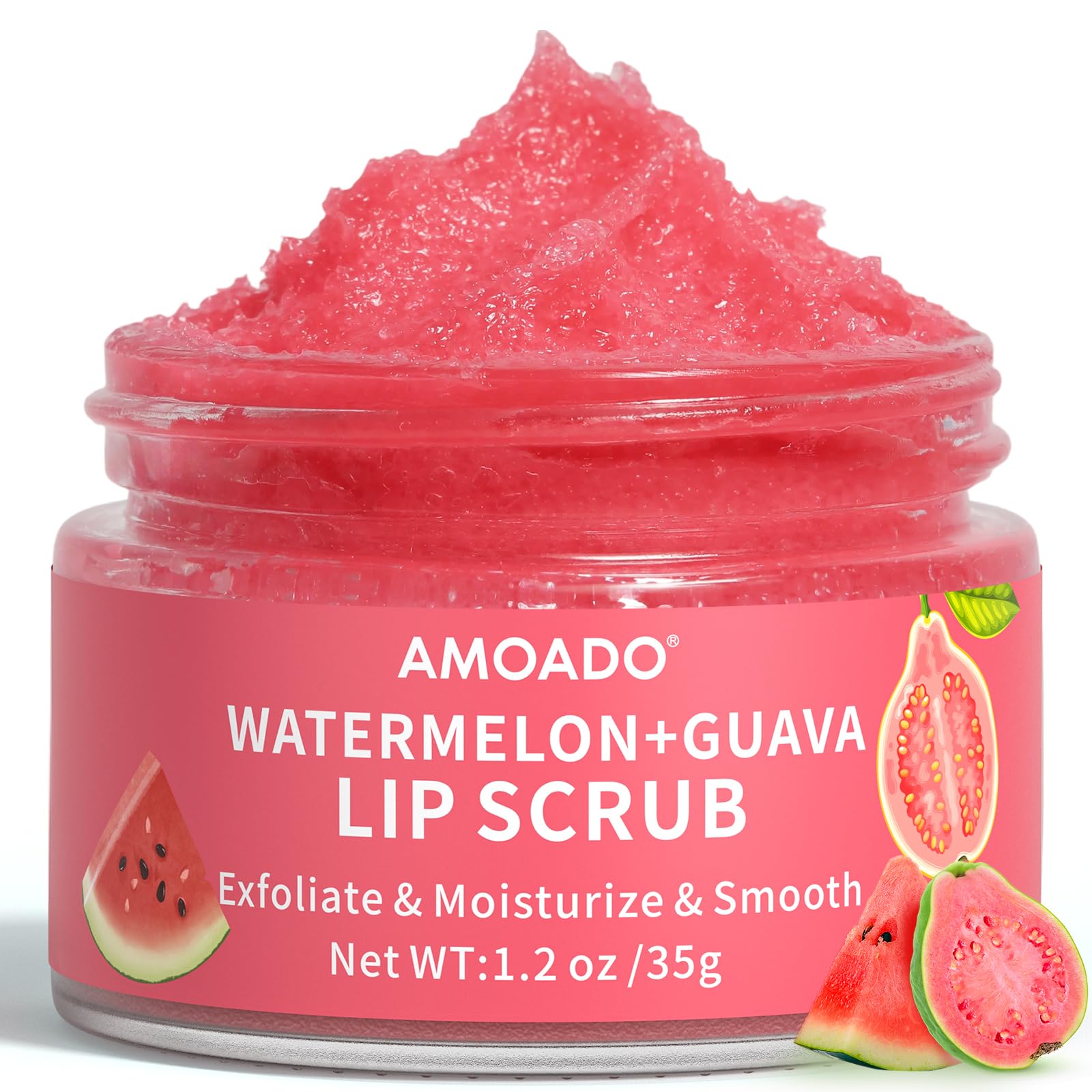 AMOADO Sugar Lip Scrub for Dark Lips Exfoliating Lip Scrub for Smooth & Soft Lips with Watermelon & Guava Lip Exfoliator & Moisturizer for Dry Chapped Lips Natural Lip Care 1.2 oz/35g