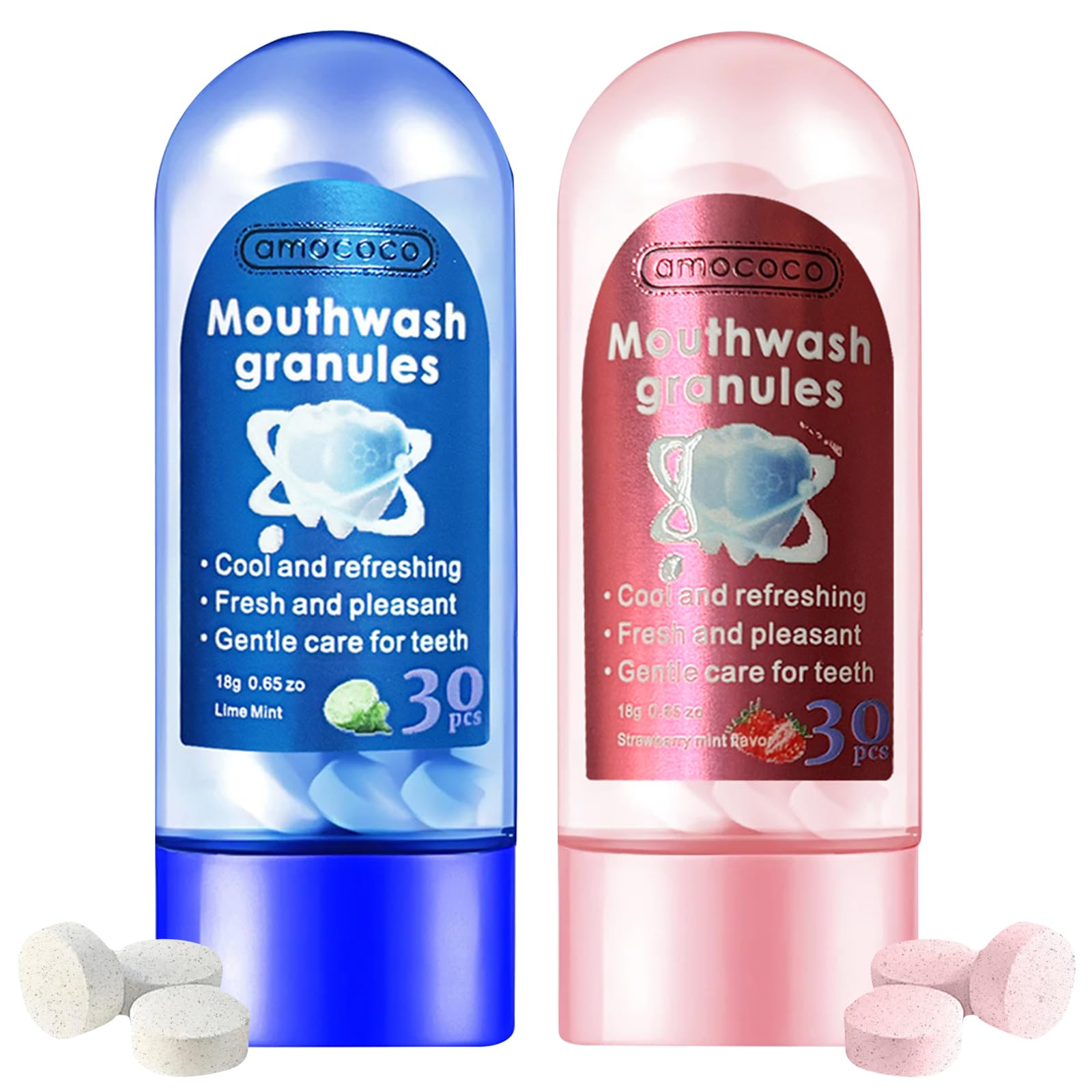 Amococo 30 Count Toothpaste Tablets for Deep Cleaning Gentle on Gums Stain Removal Fresh Breath Mouthwash Granule (Strawberry&Lime Mint)