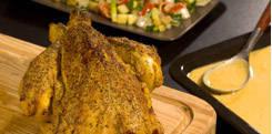 Du poulet tendre et savoureux, grâce à la succulente croûte de moutarde Amora.