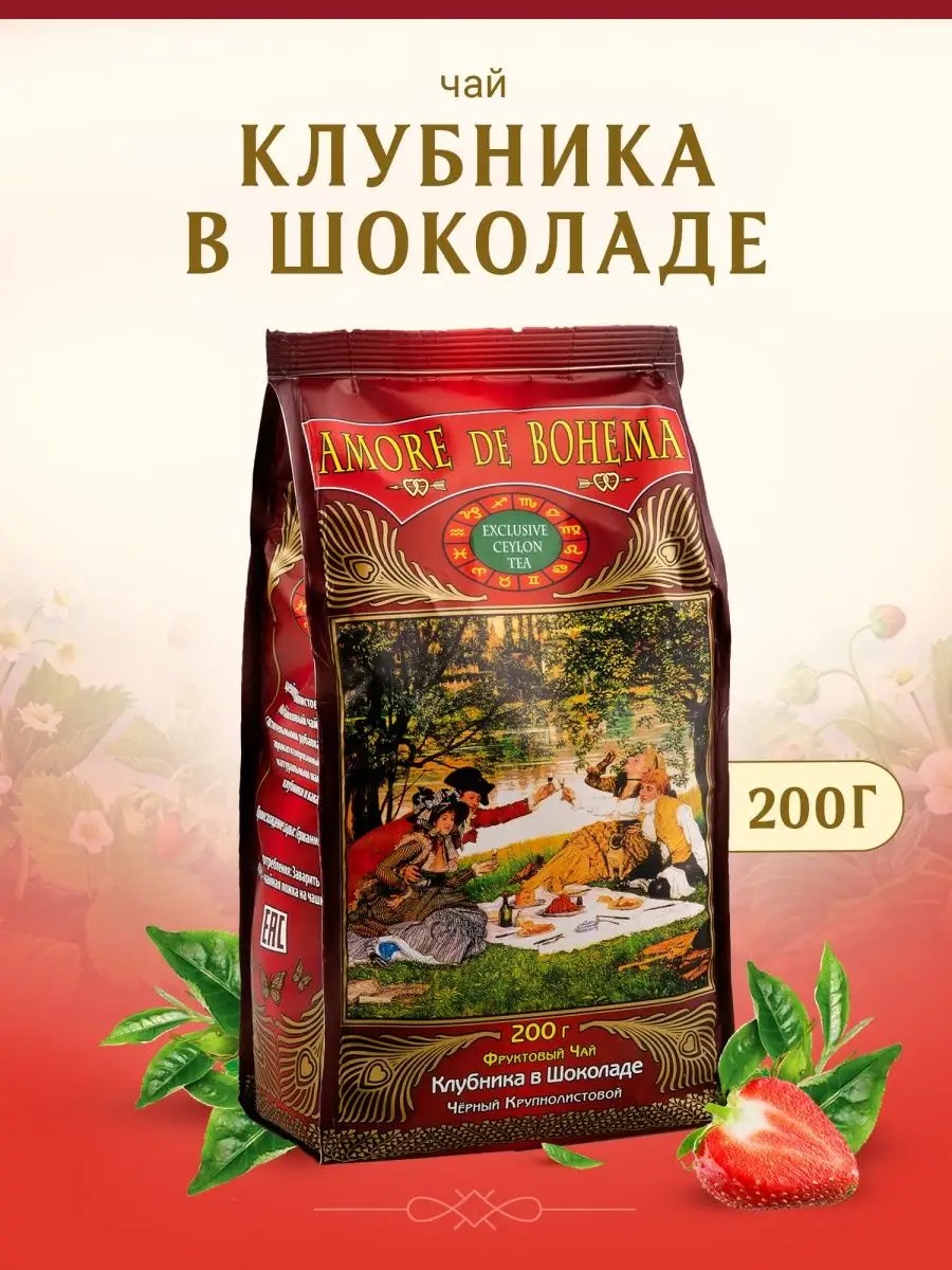 | Полное наименование товара | Чай черный листовой Клубника в шоколаде Аморе де Богема 200г. |