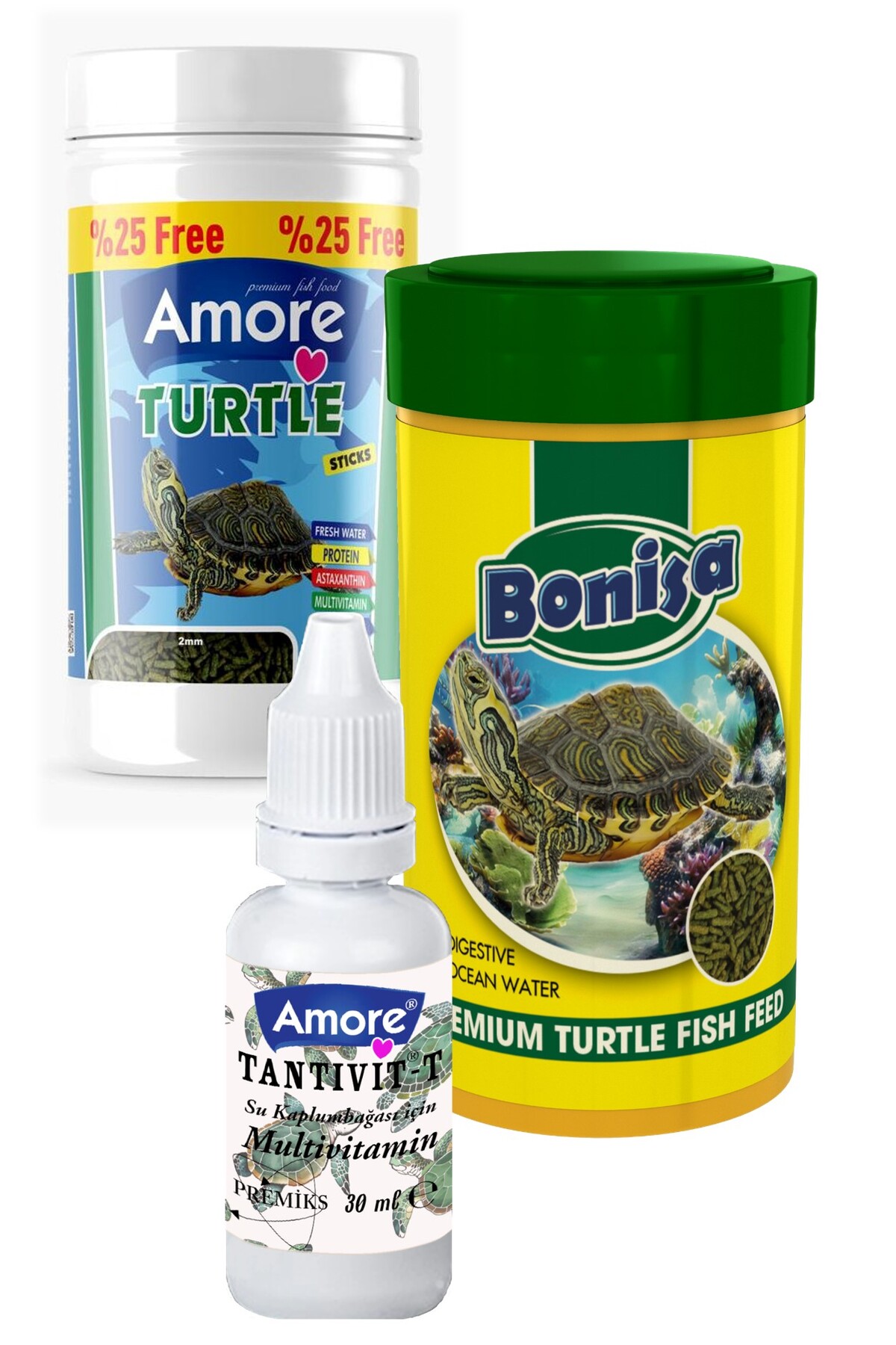 AMORE Turtle Green Sticks 125 250 ml Bonisa Turtle Food and Vitamin Set of 3