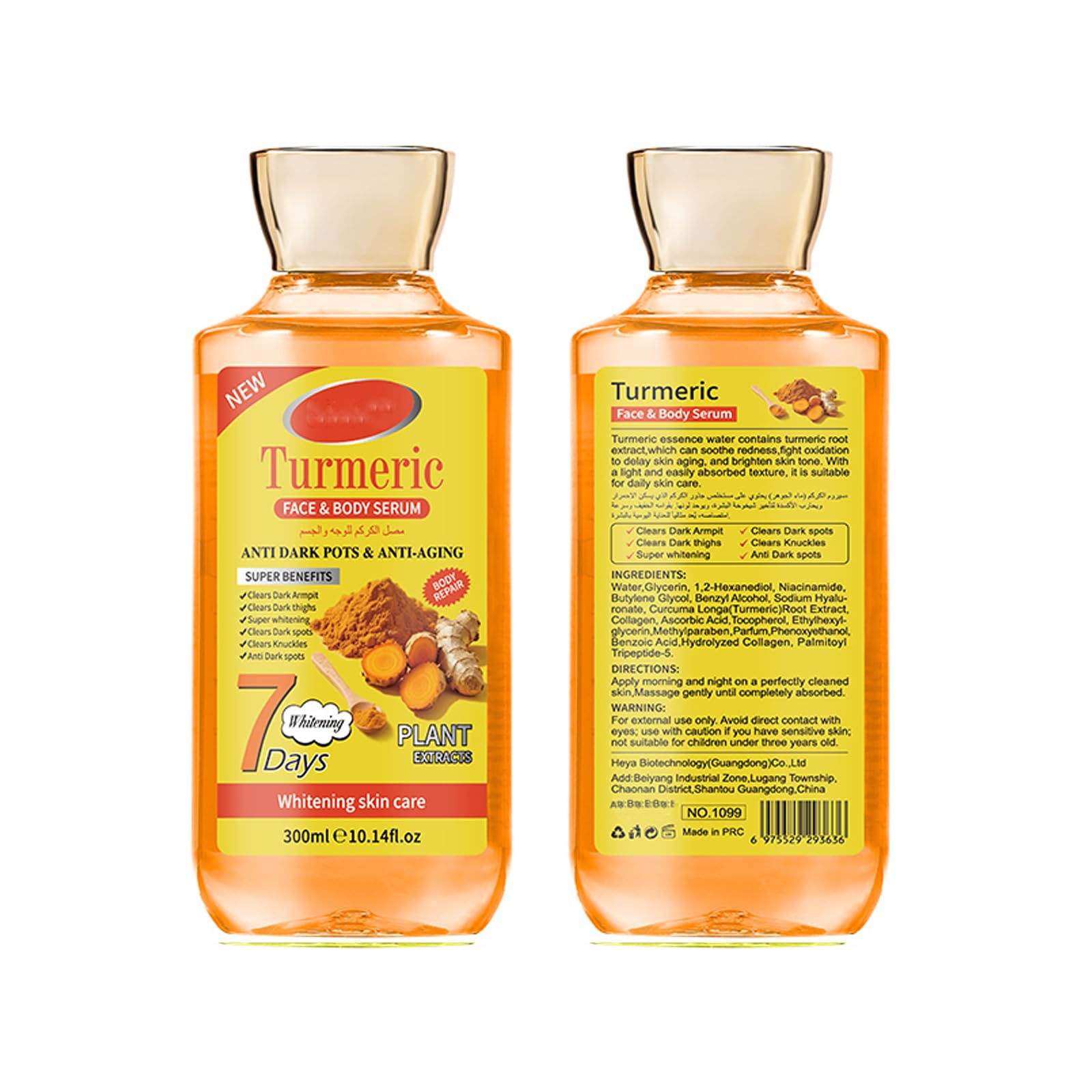 Power Bright face and body serum, vitamin C, turmeric and kojic acid formula, 300 ml ? ? Revolutionary triple action against pigment spots Our highly effective serum combines vitamin C, turmeric and kojic acid in a powerhouse formula specially developed for face and body. Achieve an even, radiant complexion from head to toe. Effective against dark spots and blemishes: the synergistic action of kojic acid and vitamin C is proven to inhibit melanin production and visibly reduces age spots, sun spots, hyperpigmentation and acne scars for a clear, even complexion. ? Radiantly beautiful and anti-oxidative protection: stabilized vitamin C (ascorbic acid) provides powerful protection against free radicals and environmental damage. It brightens the skin, intensively hydrates and gives your skin a healthy, vital glow. Soothing and anti-inflammatory due to turmeric, a natural anti-aging wonder, noticeably soothes irritated skin, reduces redness and is particularly effective for relieving body acne. It promotes a balanced, clear skin appearance. ? Absorbs quickly and does not leave a greasy feeling Our light, non-comedogenic texture is immediately absorbed, deeply hydrates and refines the skin without clogging pores. For noticeably softer, more supple skin. Use: Apply daily to face and body. For best results, dab after cleansing, massage gently and top up with SPF moisturizer. - Benefits: fights pigment spots intensively hydrates soothes the skin gives a radiant glow - formula: 300 ml for all skin types free from parabens and sulphates not tested on animals. ? Add it to your shopping cart now and invest in radiantly beautiful skin SAFETY WARNING For external use only. Avoid contact with the eyes. Keep it away from open flames and direct heat sources.For All Skin Types - Safe Effective This 300ml multi-purpose serum has been carefully formulated to be non-irritating and suitable for all skin types. Free from harmful substances and not tested on animals - your daily solution for harmonious, radiant skin. Deep Hydration Texture Improvement The quickly absorbed, non-greasy formula provides the skin with intense nutrition without clogging pores. It refines skin texture for an incredibly soft, smooth and supple feel. Soothes Relieves Skin Irritation Created to soothe irritated skin and reduce redness. Our serum is particularly effective at soothing inflammation and promoting balanced, smoother skin. Powerful Brightening Antioxidant Protection This serum provides strong protection against environmental factors that cause premature aging. It actively brightens the skin, restores its natural clarity and gives a healthy, vital appearance. ? Reduces Dark Spots Evens Skin Tone Our advanced formula is specially formulated to target stubborn dark spots, hyperpigmentation and uneven skin tone. It works effectively to promote remarkably clear and radiant skin.Power Bright Gezichts- en Lichaamsserum - 300ml Multi-Action Behandeling voor Stralende Huid, Egaliseert Teint Diepe Hydratatie Power Bright gezichts- en lichaamsserum, vitamine C, kurkuma en kojïzuur formule, 300 ml ? ? Revolutionaire 3-voudige werking tegen pigmentvlekken Ons zeer effectieve serum combineert vitamine C, kurkuma en kojïzuur in een powerhouse formule die speciaal voor gezicht en lichaam is ontwikkeld. Bereik een gelijkmatige, stralende teint van top tot teen. Effectief tegen donkere vlekken en oneffenheden: de synergetische werking van kojïzuur en vitamine C remt aantoonbaar de melanineproductie en vermindert zichtbaar ouderdomsvlekken, zonnevlekken, hyperpigmentatie en acnelittekens voor een heldere, gelijkmatige teint. ? Stralende mooie en anti-oxidatieve bescherming: gestabiliseerde vitamine C (ascorbinezuur) biedt krachtige bescherming tegen vrije radicalen en milieuschade. Het verheldert de huid, hydrateert intensief en geeft je huid een gezonde, vitale gloed. Kalmerend en anti-ontvlambaar door kurkuma, een natuurlijk anti-aging wonder, kalmeert merkbaar geïrriteerde huid, vermindert roodheid en is bijzonder effectief voor het verlichten van acne van het lichaam. Het bevordert een evenwichtig, zuiver huidbeeld. ? Neemt snel op en laat geen vetgevoel achter Onze lichte, niet-comedogene textuur trekt onmiddellijk in, hydrateert diep en verfijnt het huidbeeld zonder poriën te verstoppen. Voor een merkbaar zachtere, soepelere huid. Gebruik: dagelijks op gezicht en lichaam aanbrengen. Voor de beste resultaten na het reinigen deppen, zacht inmasseren en met vochtinbrengende crème SPF aanvullen. - Voordelen: bestrijdt pigmentvlekken hydrateert intensief kalmeert de huid geeft een stralende gloed - formule: 300 ml voor alle huidtypes vrij van parabenen en sulfaten dierproefvrij. ? Nu in het winkelmandje leggen en investeren in een stralend mooie huid VEILIGHEIDSWAARSCHUWING Alleen voor uitwendig gebruik. Vermijd contact met de ogen. Houd het uit de buurt van open vuur en directe warmtebronnen.Voor Alle Huidtypes - Veilig Effectief Dit 300ml multifunctionele serum is zorgvuldig samengesteld om niet-irriterend te zijn en geschikt voor alle huidtypes. Vrij van schadelijke stoffen en dierproefvrij - uw dagelijkse oplossing voor een harmonieuze, stralende huid. Diepe Hydratatie Textuurverbetering De snel intrekkende, niet-vette formule voorziet de huid van intense voeding zonder poriën te verstoppen. Het verfijnt de huidtextuur voor een ongelooflijk zachte, gladde en soepele aanvoeling. Kalmeert Verlicht Huidirritatie Gemaakt om geïrriteerde huid te kalmeren en roodheid te verminderen. Ons serum is bijzonder effectief voor het verzachten van ontstekingen en bevordert een evenwichtige, gladdere huid. Krachtige Verheldering Antioxidante Bescherming Dit serum biedt sterke bescherming tegen omgevingsfactoren die vroegtijdige veroudering veroorzaken. Het verheldert actief de huid, herstelt de natuurlijke helderheid en geeft een gezonde, vitale uitstraling. ? Vermindert Donkere Vlekken Egaliseert Huidteint Onze geavanceerde formule is speciaal ontw