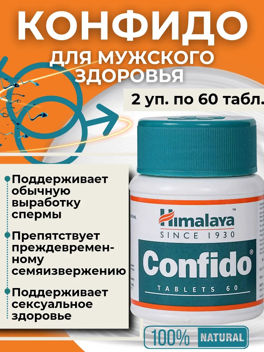 Заботьтесь о своем здоровье природным путём с Соnfido от Himalaya Herbals. Выбирайте проверенные временем решения для поддержания вашей мужской силы на высоком уровне! Инструкция по применению: Ускоренная эякуляция: 1 таблетка 2 раза в сутки в течение 2-4 недель; Сперматорея, ночные поллюции: 1 таблетка 2 раза в сутки в течение 4-6 недель с последующим продолжением курса лечения по 1 таблетке 1 раз в сутки в течение следующих 4 недель.