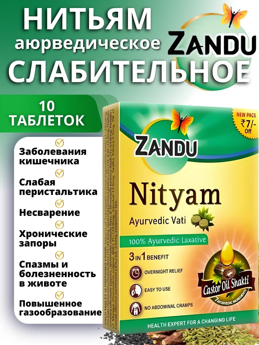 Nityam Zandu – это мягкое слабительное средство от запора в таблетках из Индии с натуральным составом, которое обеспечивает эффективное очищение кишечника и организма в целом. Это аюрведические таблетки для похудения из Индии, разработанные специально для улучшения работы пищеварительной системы. Использование этого средства помогает избавиться от ощущения дискомфорта, снимает боли и спазмы, которые могут возникать при проблемах ЖКТ.