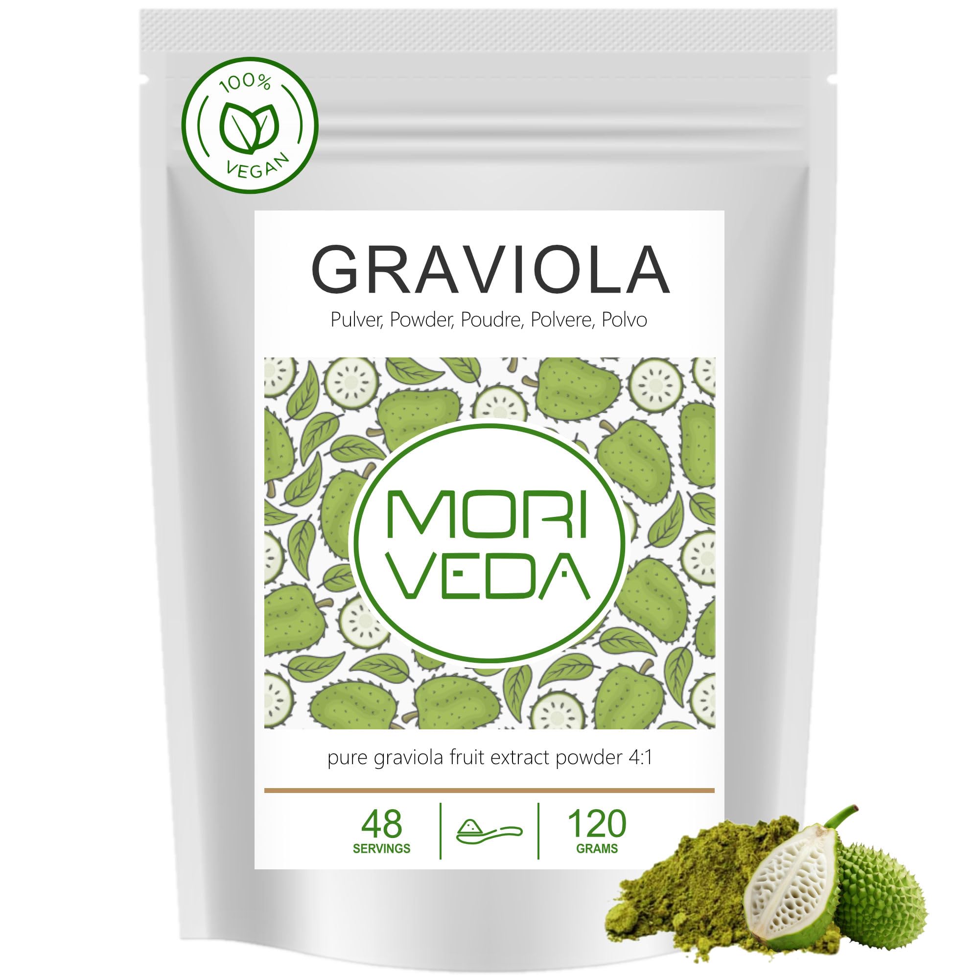 Graviola fruit powder in 1A raw food quality. The original from Peru, rainforest, graviola powder from fruit plant parts, micro-pulverized and untreated, guaranteed controlled and laboratory tested Ayurveda quality. The positive spectrum of Graviola is very broad and has had a permanent place in the traditional medicine of South America for generations. Natural peoples and Native Americans have used graviola for millennia. For several decades, Graviola has been known for its positive powers in large parts of Asia, but also incregly in the US and Australia. INGREDIENTS Graviola fruit powder 4:1 extractThis traditional product has a wide range of applications as a hot drink, in drinks, muesli, yoghurt, with various dishes and much more. The Indians and natural peoples of use the fruits as a soft drink and the leaves as a traditional remedy. The evergreen graviola tree grows to a height of approximately 5-6 meters and contains numerous effective substances that have gifted us with the gentle power of Mother Nature. Graviola is a special tree from the region in South America and a unique gift from nature. The natives of the tropics value the fruits as a refreshing food and the leaves as a traditional medicine.MoriVeda Graviola Poederextract, 100 natuurlijk, graviola fruitextract, rijk aan vitaminen en antioxidanten, graviola van eersteklas kwaliteit, veganistisch en glutenvrij (1 x 120 g) Graviola fruitpoeder in 1A rauwkostkwaliteit. Het origineel uit Peru, as regenwoud, graviolapoeder uit fruit plantendelen, micro-gepulverd en onbehandeld, gegarandeerd gecontroleerde en laboratorium geteste Ayurveda-kwaliteit. Het positieve spectrum van Graviola is zeer breed en neemt al generaties lang een vaste plaats in de traditionele geneeskunde van Zuid-Amerika. Natuurlijke volkeren en indianen gebruiken graviola al millennia. Sinds enkele decennia staat Graviola in grote delen van Azië, maar ook steeds meer in de VS en Australië bekend om de positieve krachten. INGREDIËNTEN Graviola fruitpoeder 4:1 extractDit traditionele product heeft een breed scala aan toepassingen als warme drank, in dranken, muesli, yoghurt, bij verschillende gerechten en nog veel meer. De Indianen en natuurlijke volkeren van gebruiken de vruchten als frisdrank en de bladeren als traditionele remedie. De altijd groene graviola boom wordt ca. 5-6 meter hoog en bevat talrijke effectieve stoffen, die ons de zachte kracht van moeder natuur tot cadeau heeft gemaakt. Graviola is een bijzondere boom uit het egebied in Zuid-Amerika en een uniek geschenk van de natuur. De inboorlingen van de tropen waarderen de vruchten als verfrissend voedsel en de bladeren als een traditioneel geneesmiddel.