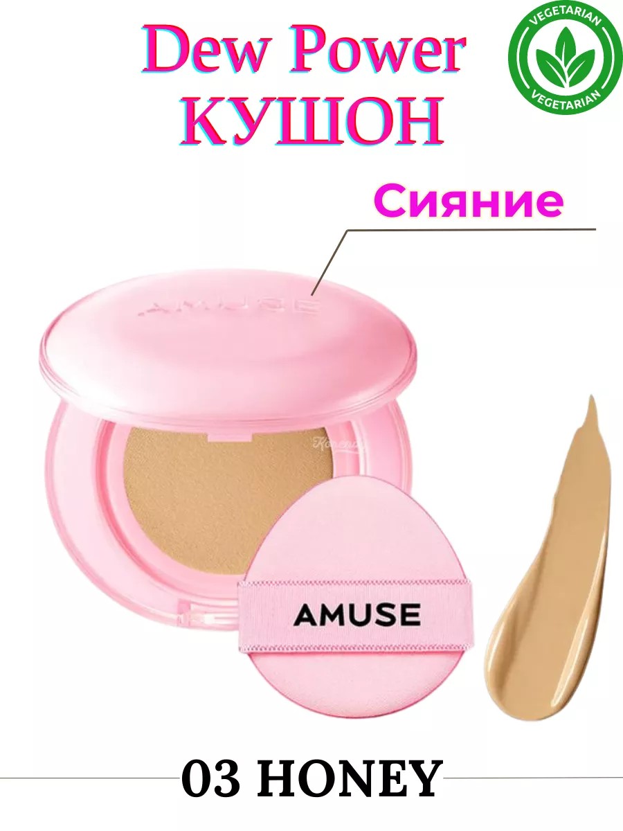 Amuse DEW POWER VEGAN CUSHION SPF 38 PA+++ /Этот кушон не только доставит эстетическое удовольствие своей обладательнице, но и удивит своим покрытием!
