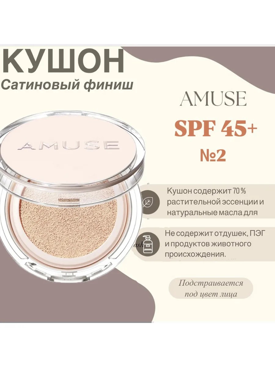 AMUSE Кушон увлажняющий с сатиновым финишем с SPF 45+ Веган № 2