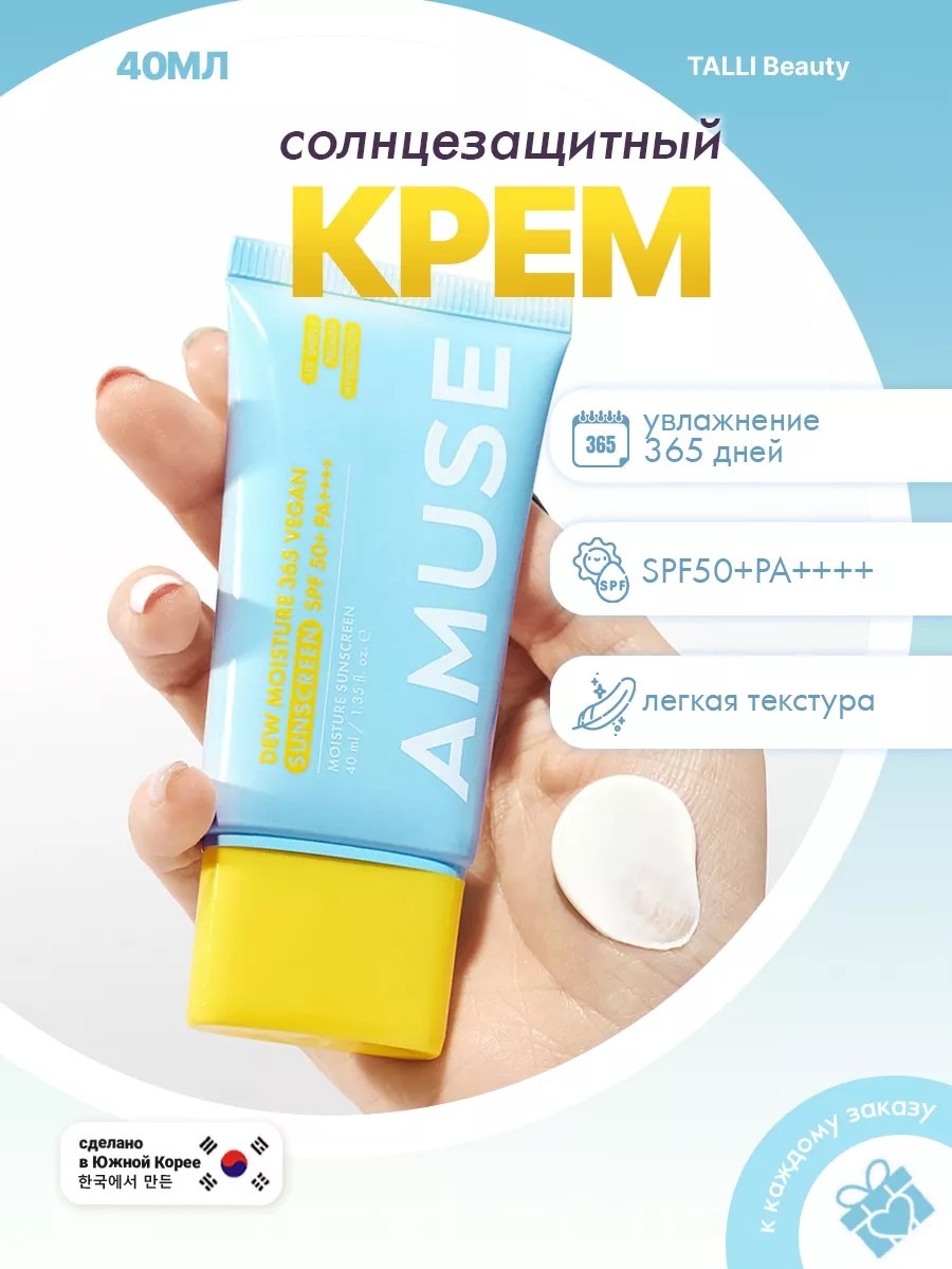 Корейский веганский солнцезащитный крем AMUSE DEW MOISTURE 365 VEGAN SUNSCREEN 40мл для ежедневного применения.