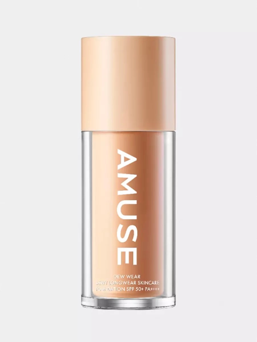 AMUSE DEW WEAR FOUNDATION [03 HONEY] 35ml. This foundation not only evens out skin tone but also moisturizes and nourishes it. This Korean product doesn't accentuate flaking, makes skin softer, and imparts a natural radiance, ensuring a perfectly even tone without the feeling of a mask. It is ideal for those looking for a universal product that not only cares for the skin by moisturizing and nourishing it, but also gives it a healthy, radiant appearance and protects against the harmful effects of UV rays and the sun, thanks to SPF 50+ PA++++. The cream is hypoallergenic and provides a natural radiance and healthy-looking skin. The foundation has been dermatologically tested. Before use, shake by holding the top and bottom of the container, and twist to the right to open. Apply an appropriate amount to the skin with your hands or a sponge, then close the container by twisting it to the right.