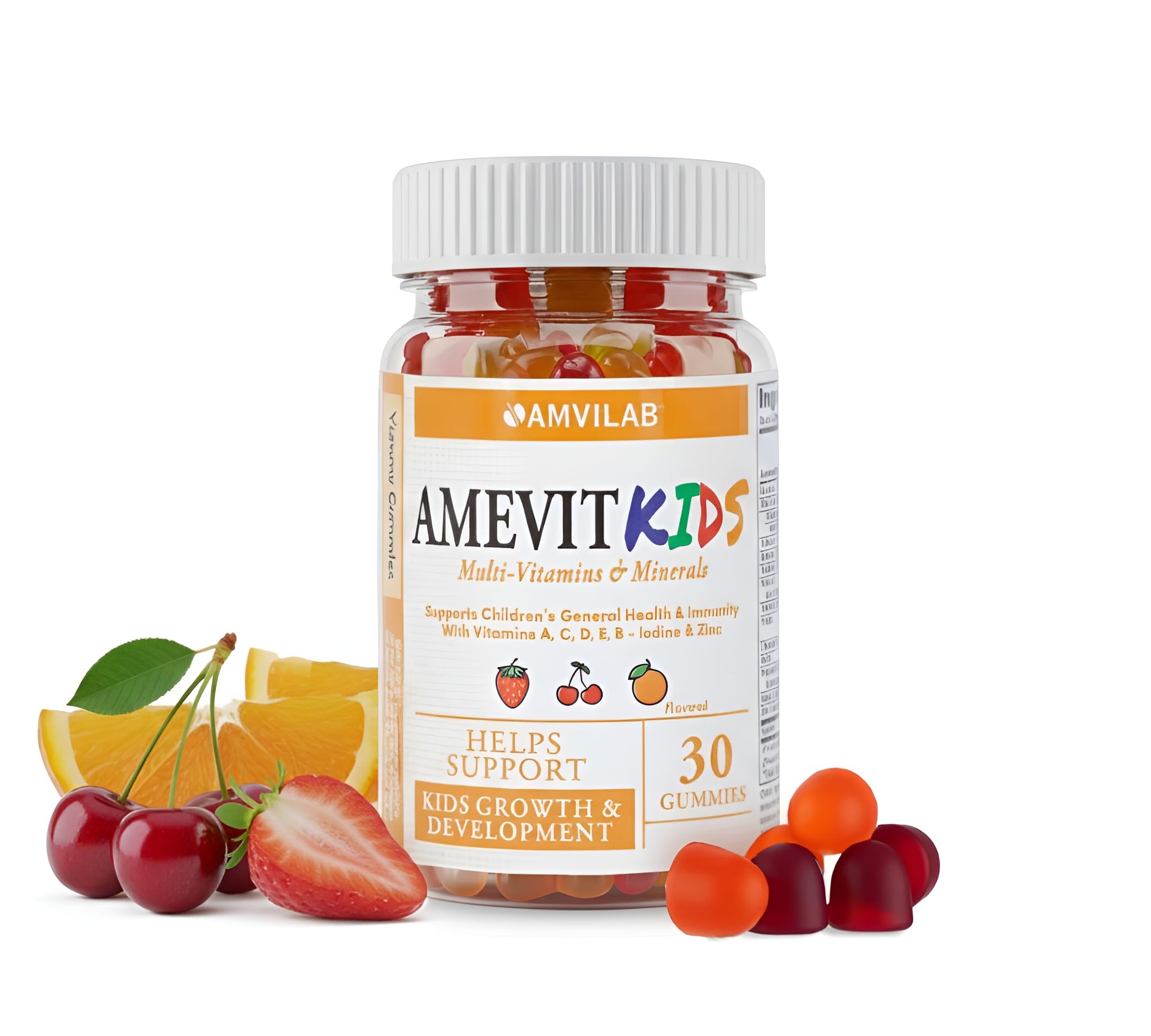 AMVILAB Amevit Kids Gummy Multivitamin Complete Daily Vitamins for Children with Essential Nutrients for Growth & Immunity Natural Fruit Flavor 30 Gummies